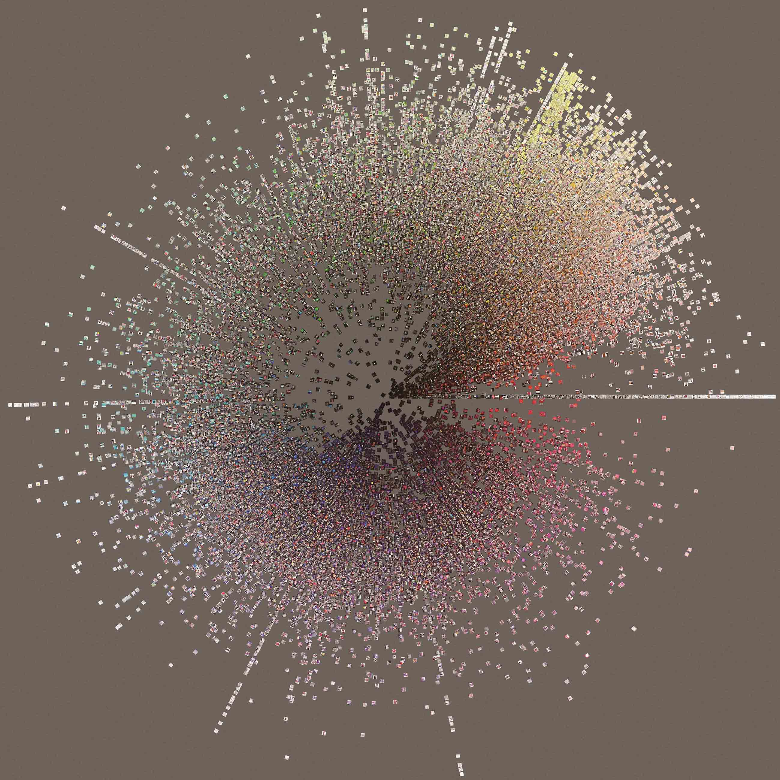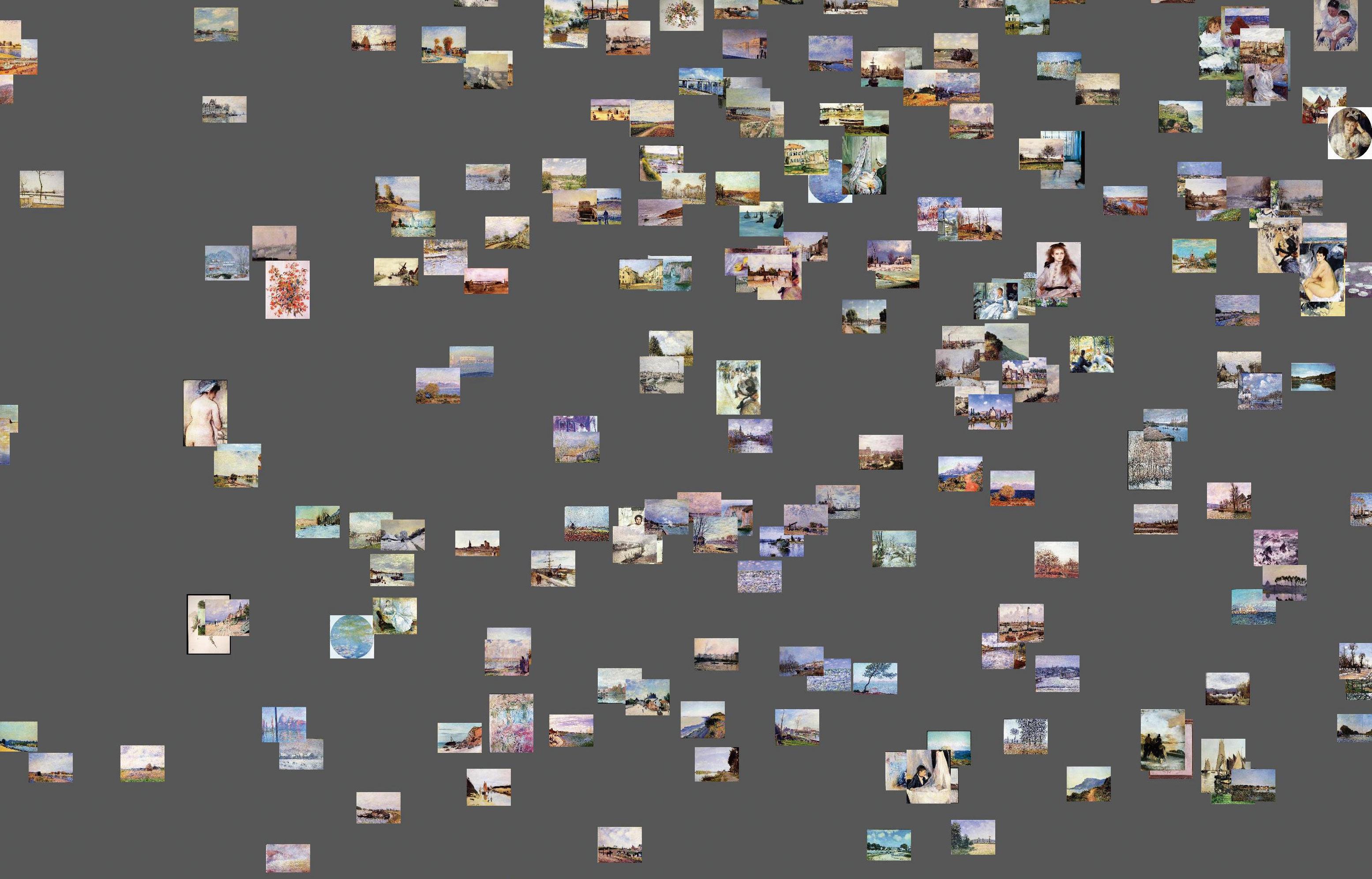 彩图3 通过视觉相似性组织的5000幅印象派画作的可视化。