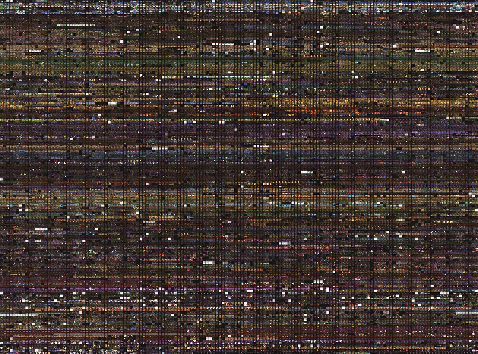 彩图14 游戏《王国之心》图像蒙太奇,由62.5小时游玩视频记录中抽样的 22500 帧制成,根据游玩进程(从左至右,从上到下)排列而成。