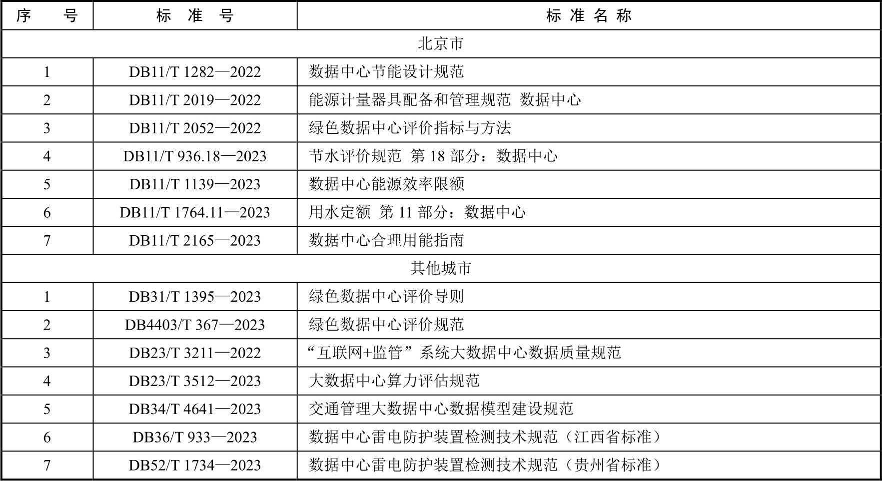 (7)DB11/T 2165—2023《数据中心合理用能指南》。该标准规定了数据中心能源使用的基本要求和节能运行要求,适用于数据中心能源使用的指导和管理。