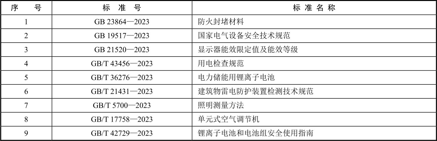 (4)GB/T 43456—2023《用电检查规范》。该标准规定了用电检查工作规范,包括常规用电安全检查、重大活动保障检查、其他检查、证实方法等。该标准适用于依法取得供电类电力业务许可证的企业对其经营区域内电力用户开展用电检查,以及电力用户开展用电安全自查。