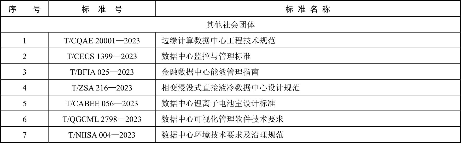 (6)T/CA 602.2—2024《智能计算数据中心设计要求》。该标准规定了智能计算中心的总体要求、设备、建筑、电气等方面设计要求,适用于新建、改建和扩建的智能计算数据中心的规划设计。