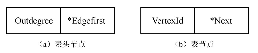 视频逻辑单元图 G ( V , E )中, V 表示视频逻辑单元集合,其元素称为顶点; E 表示顶点之间的解码依赖关系。视频逻辑单元集合 V 为{ v 1 , v 2 ,…, v n },将视频逻辑单元映射为顶点时的序号{1,2,…, n }与该视频逻辑单元的解码次序一致,即接收端将依次解码视频逻辑单元 v 1 、 v 2 、…、 v n 。采用有向边 v i →v j 表示顶点 v j 解码依赖于顶点 v i ,即只有当顶点 v i 被正确接收后,顶点 v j 才能实现解码,用于恢复视频图像,故该解码关系图为一个有向图。令 L 为解码关系图的邻接表,邻接表中表头节点和表节点的结构如图2-6所示。表头节点中包含该顶点的出度Outdegree和链接边域*Edgefirst,表节点中包含所有指向该顶点发出边的顶点对应的顶点序号构成的链表,即该顶点解码所依赖的顶点构成的链表,其中VertexId表示顶点序号,*Next表示链接的下一个顶点地址。