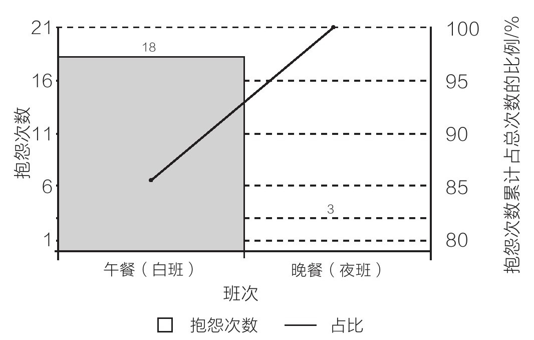 “从第三张柏拉图分析来看,是午餐这个班次的顾客抱怨比较多!”山姆仔细盯着电脑上的柏拉图。
