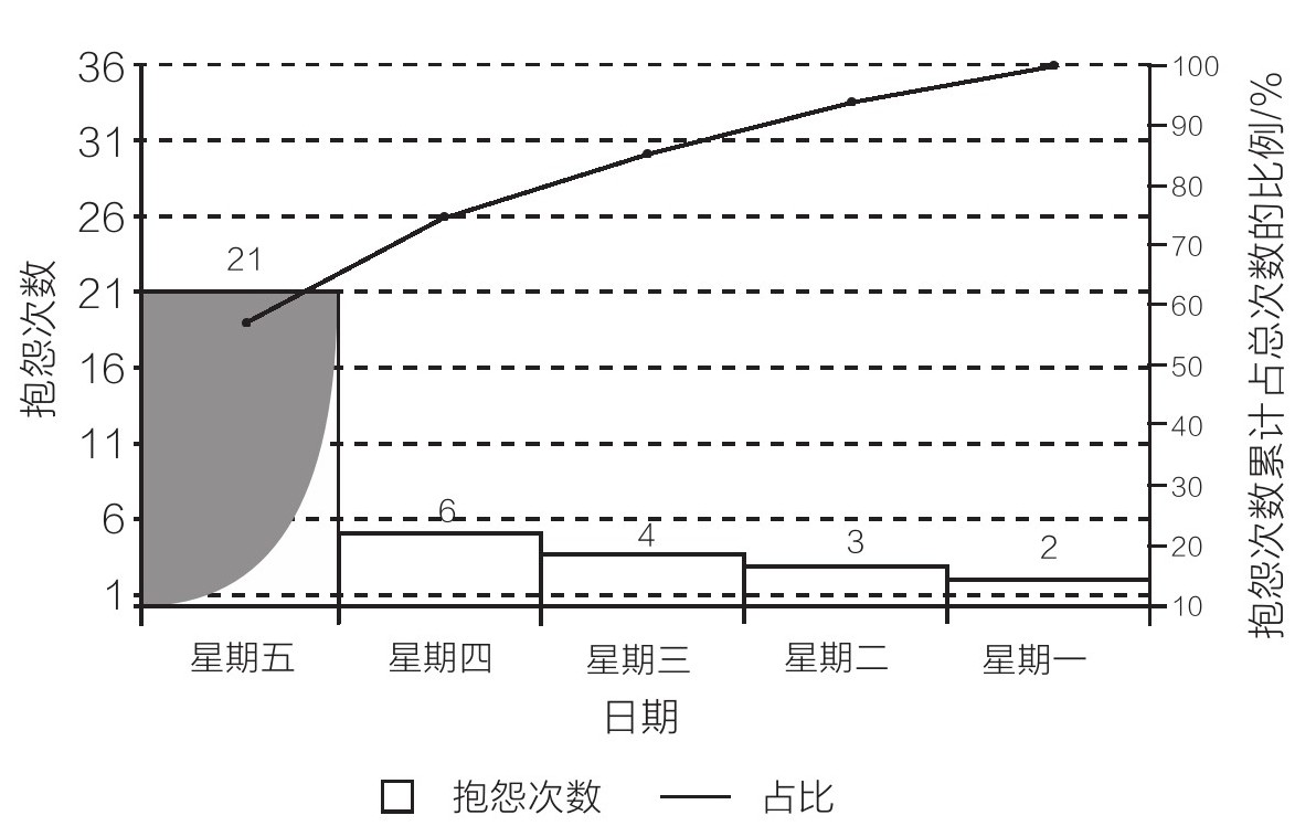 “看来是周五的等待时间太长导致被抱怨的次数最多,接近该抱怨类型一周总数的60%!”山姆发自内心地感谢柏拉图反馈出来的信息。