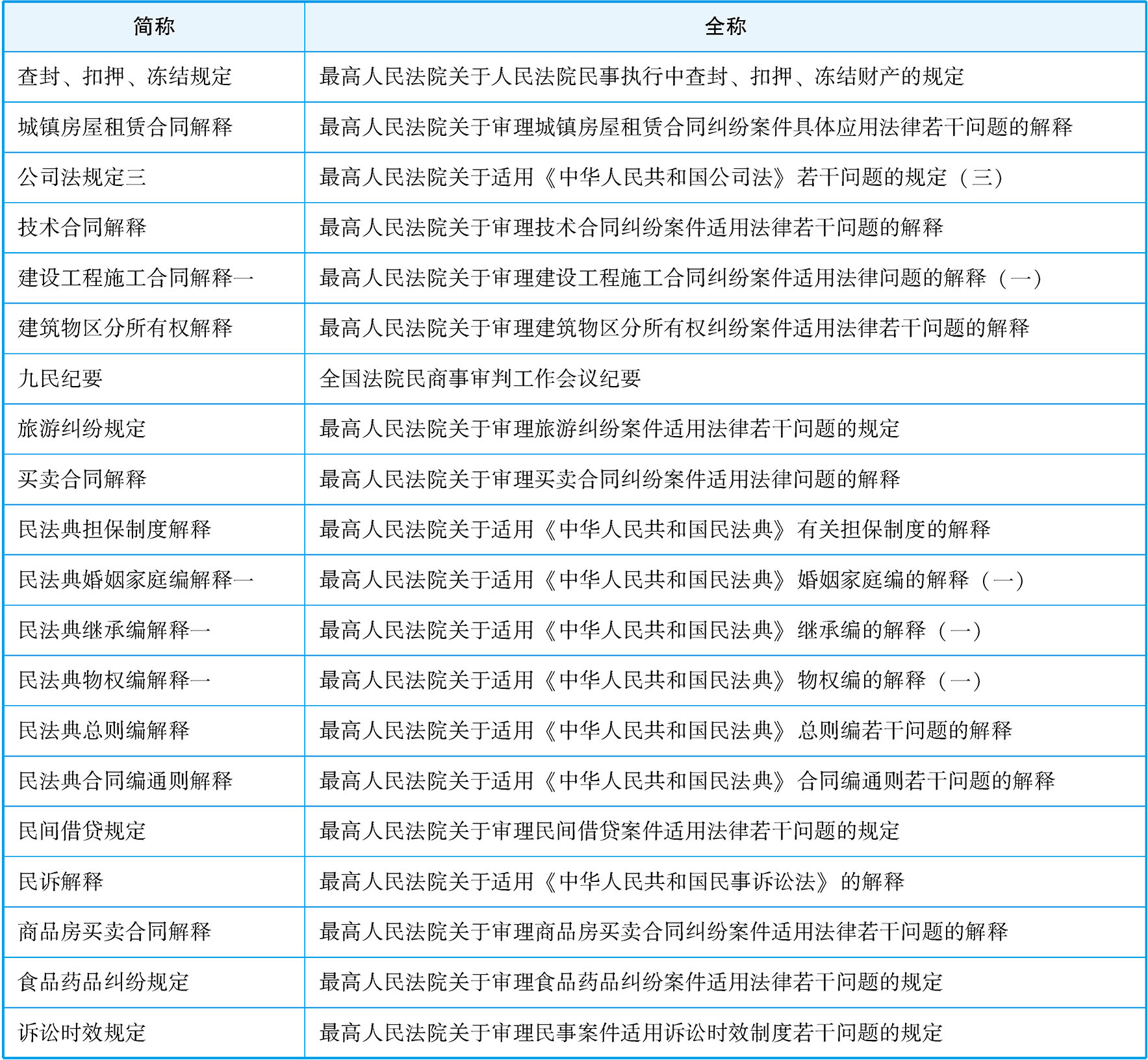 法律文件简称对照表