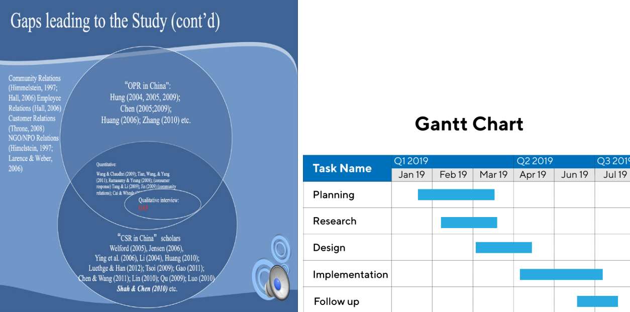 第五,在研究方法(method)部分,建议附上一个时间规划表,展示您在博士学习期间如何安排和执行研究项目,可以使用甘特图(Gantt Chart)等(见下图)。