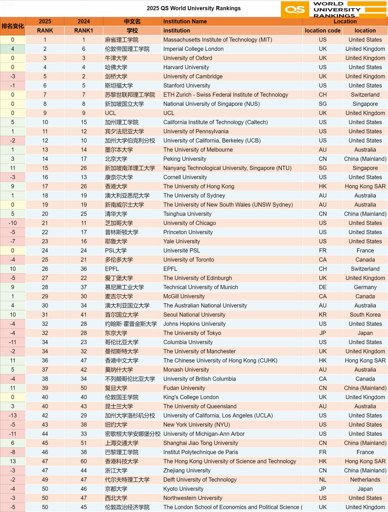 QS 世界大学排名 | THE(泰晤士高等教育)世界大学排名
