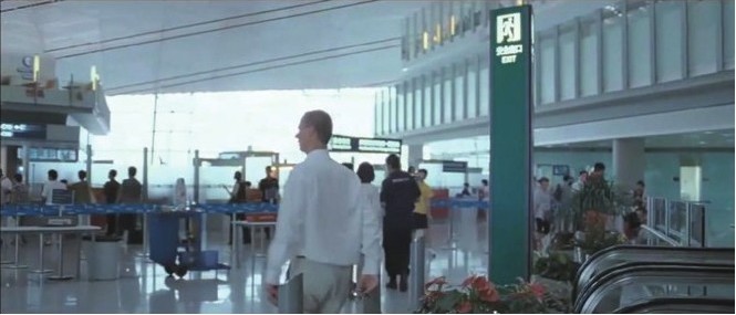 更多的时候空镜头还是被导演用作延伸并升华人物的情绪或影片的氛围,拉开影片的节奏,借景抒情。在电影《万有引力》的第一个篇章中,当男主追问女主为何会有他的打火机,又是如何知道他的信息,是否认识他时,女主道出实情,告诉他事情的真相,讲述了三年之间他们之间的缘分。女主讲完后就走了,留下了独自回味发懵的男主。此时便是影片的高潮部分,这里导演给了一段配乐的空镜头,展现了人来人往的机场。这个空镜头就是用来延伸影片情感的,让观众去深刻地感受这段巧妙而感人的故事,让观众去体会男主此刻波澜的内心变化,如图2-3-29至图2-3-34所示。