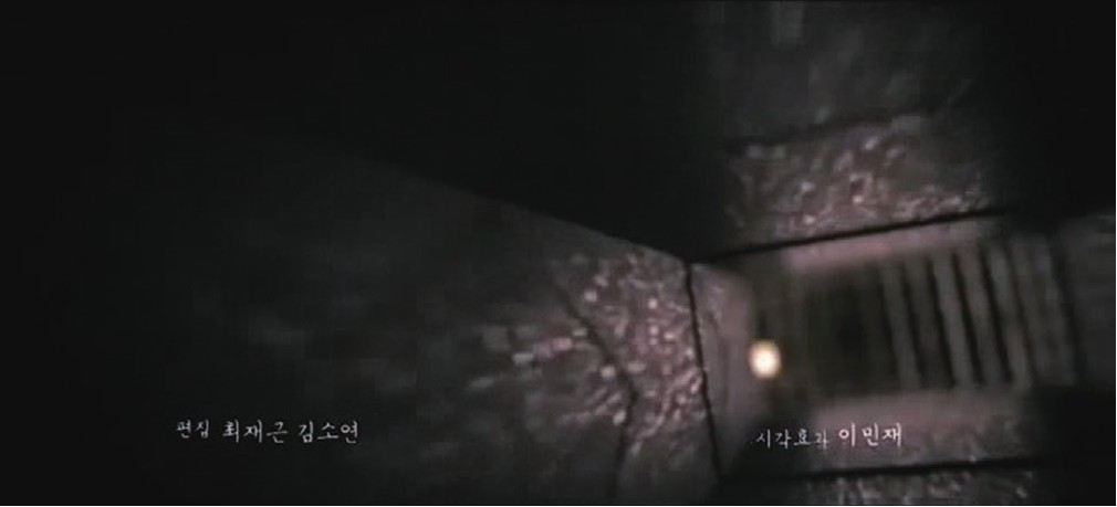 在电影《下水井》的片头,就以这种前移镜头来进行了一段急速的下水井结构穿梭,最终出现片名。在这里既交代了影片的主要场景,同时也渲染了影片惊悚悬疑的氛围,如图2-2-83至图2-2-90所示。