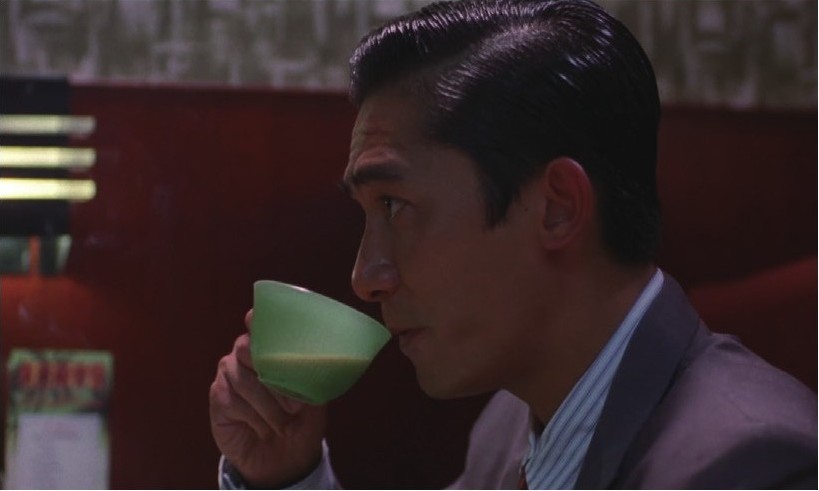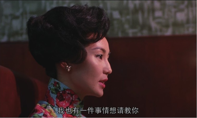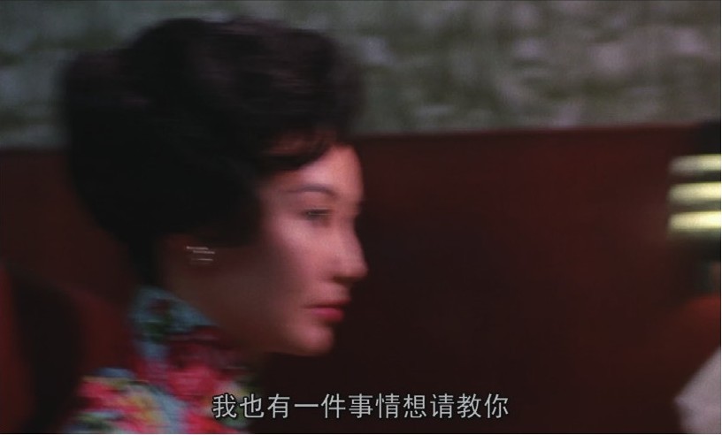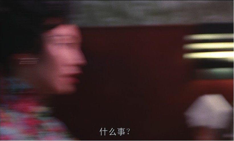 除了缓慢的移镜头,还有急速的移镜头。有的时候导演为了在一段演员的对话中刻画人物情绪的流露或突出某一个特殊氛围的场景时会选择急速的移镜头。在《花样年华》中,有一段男女主人公对话的场景中,为了突出他们逐渐摊牌自己配偶出轨了对方配偶的情绪由隐忍到激动再到坦然的变化,镜头由正常切换转变成快速移镜头,再转到了正常切换。这段急速移镜头就很好地带动了影片的节奏,如图2-2-51至图2-2-56所示。