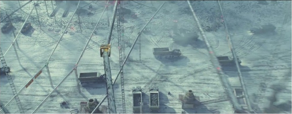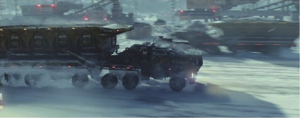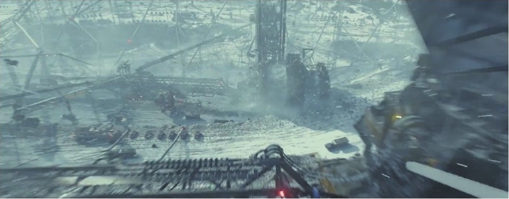 很多影片中出现快节奏的拉镜头来展示博大、炫酷的空间环境,在影片《流浪地球》中,就有一段展现环境的快拉镜头,使画面呈现出较强的爆发力和视觉冲击力,如图2-2-11至图2-2-14所示。