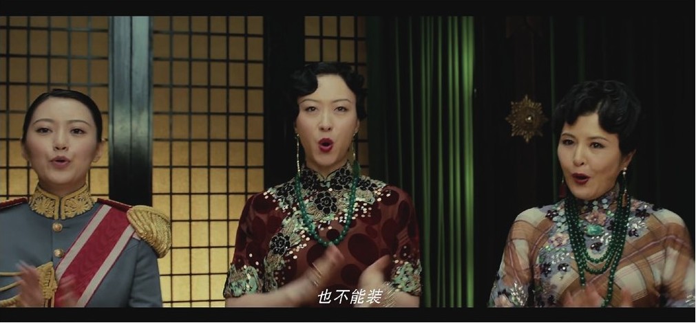 为了彰显影片环境的整体性与艺术效果,有时会采用旋转式平摇的拍摄方式,这样可以看见360度全视角下的环境,影片画面效果也会在旋转中增加视觉张力,更有代入感。在电影《一步之遥》中,马走日为项飞田和武七求情这一片段中,大家围绕圆桌唱歌时,就采用了旋转遥摄的拍摄形式,增强了影片的戏剧效果和视觉冲击力,如图2-2-43至图2-2-46所示。