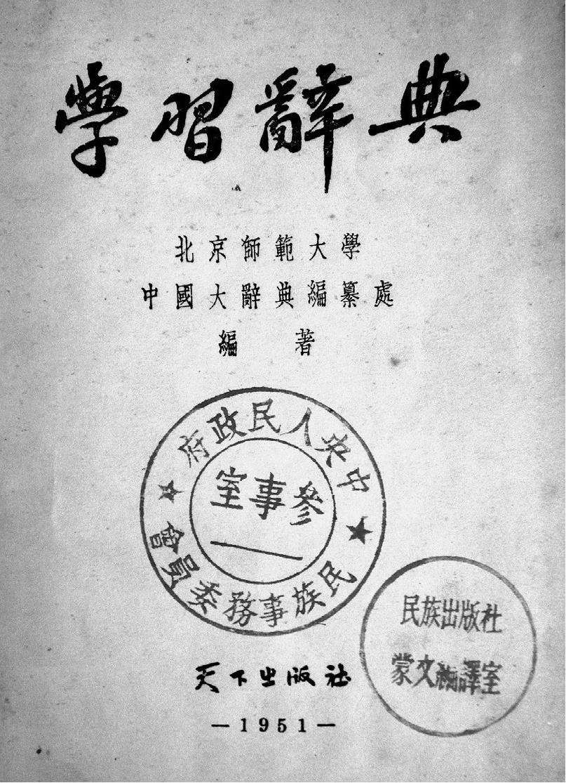 《学习辞典》这本书上的参事室、蒙文编译室的图章恰好表明了两个单位的关联性。