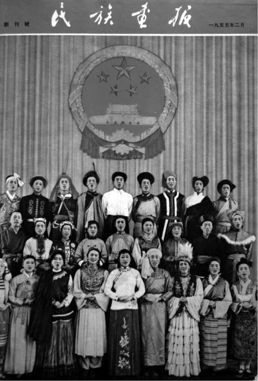 《民族画报》创刊号,中央民族歌舞团合唱队演唱《东方红》。1957年