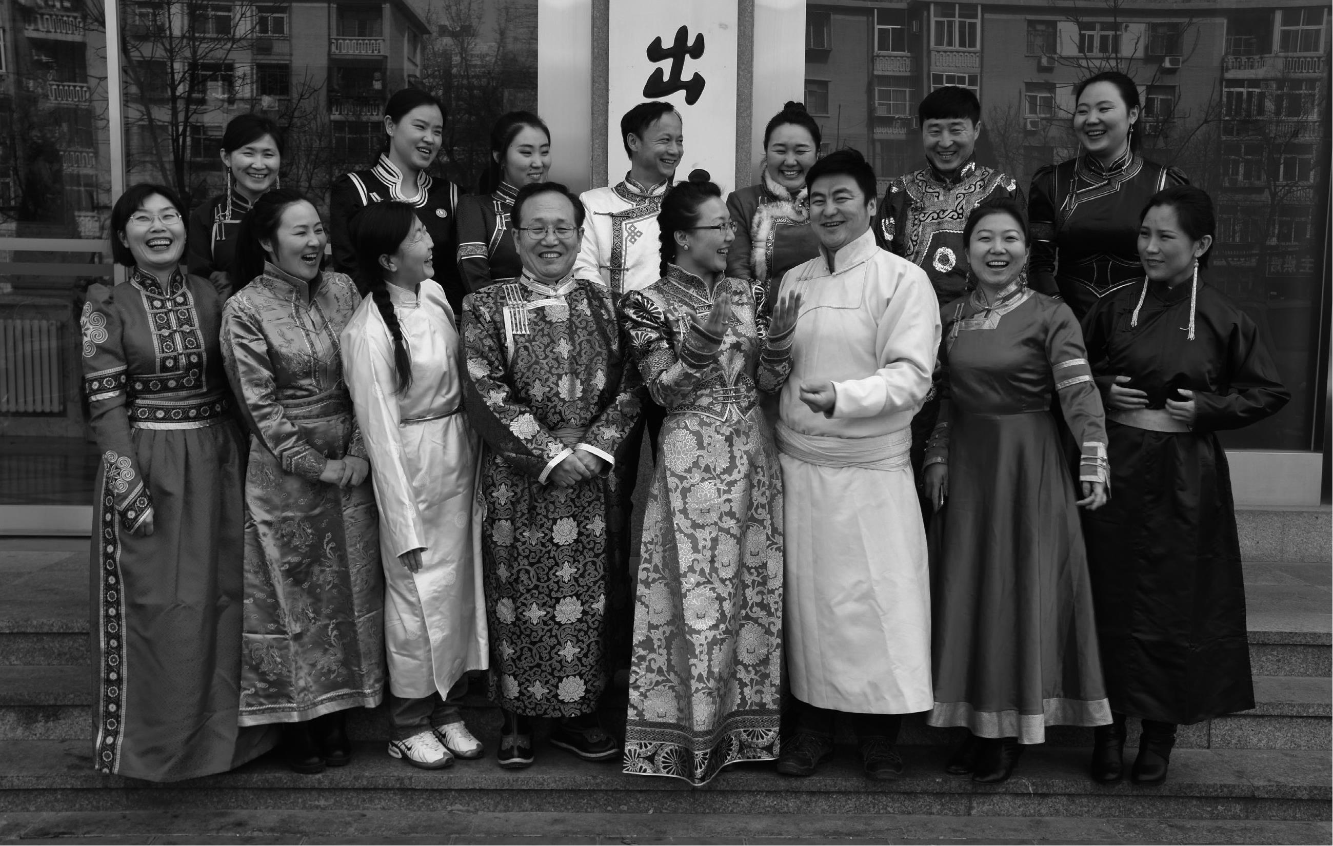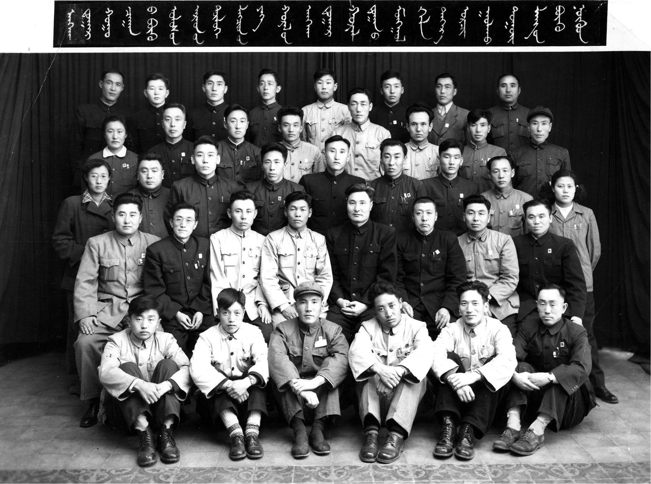 1954年第一届全国人民代表大会蒙古语翻译组全体人员合影,四排右1是笔者父亲博彦达赉,二排右4李鸿范,一排左3是著名作家巴·布林贝赫,三排右2是著名诗人纳·赛音朝克图。这是当时全国最优秀的双语人才。