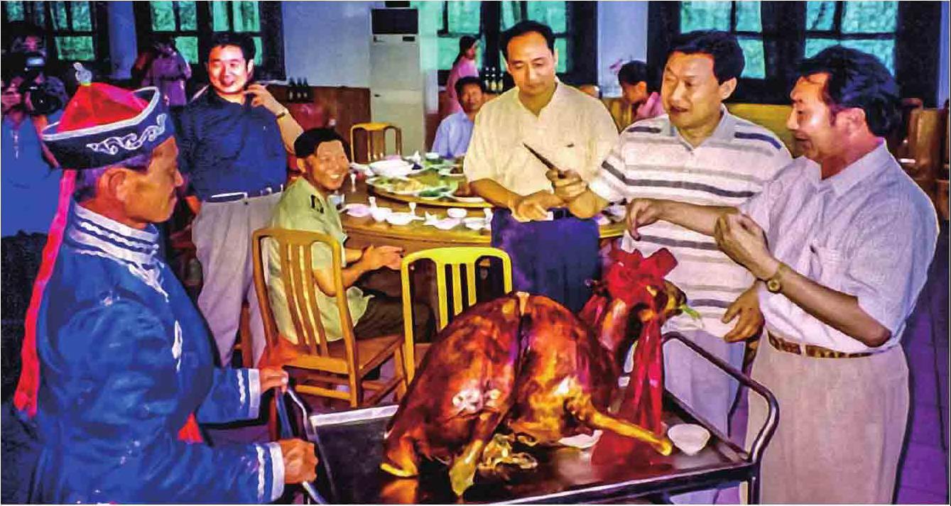 1999年8月22日,著名航天科学家王永志在额济纳旗宾馆为烤全羊剪彩