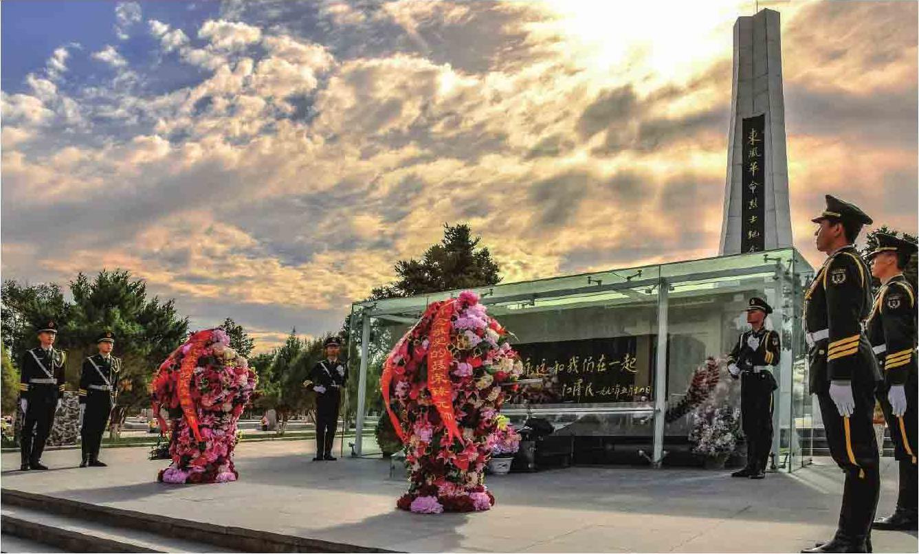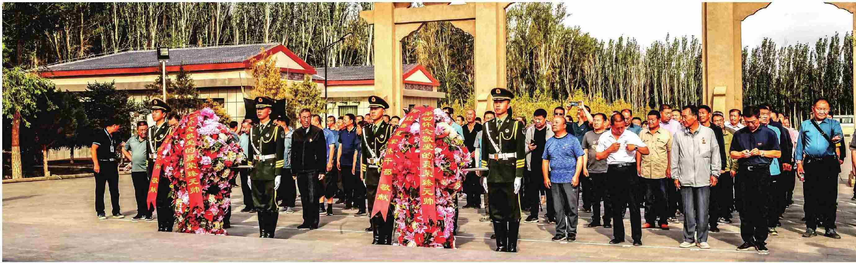 2021年6月,阿拉善盟退役老兵们向东风革命烈士纪念碑敬献花篮,深切缅怀聂荣臻元帅及航天事业的奉献者,深刻感受“大漠戈壁埋忠骨”的感人情怀