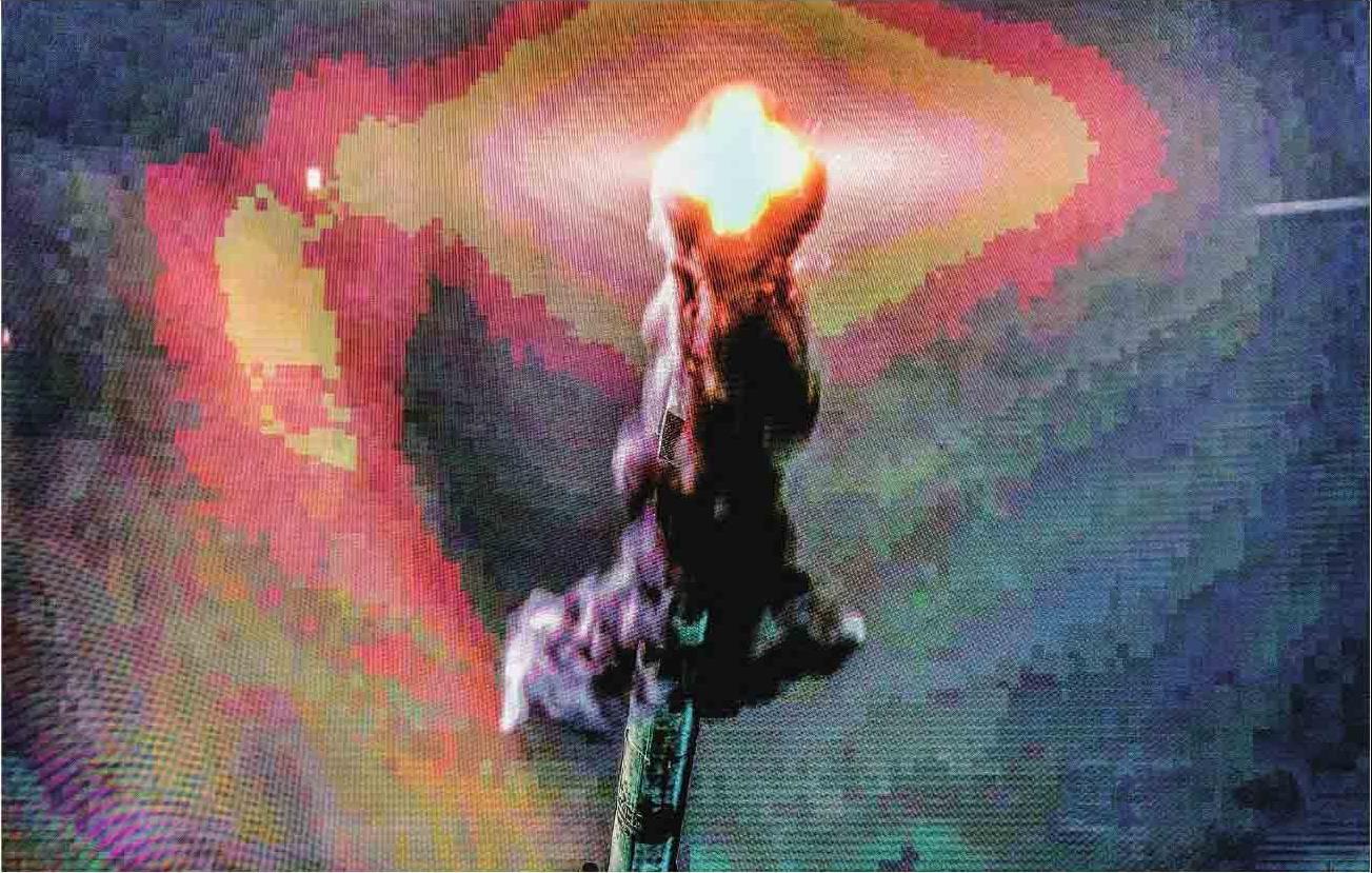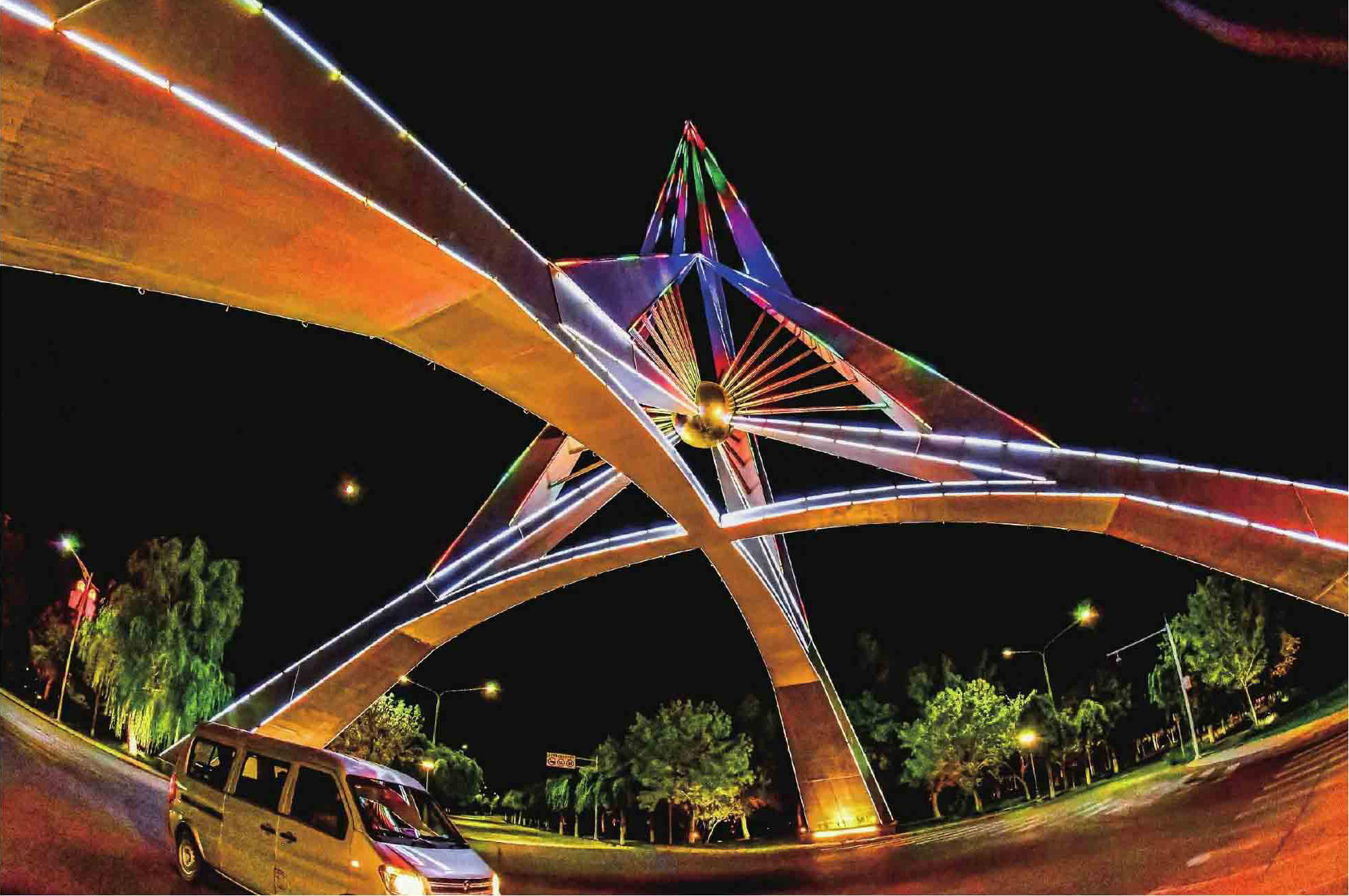 建于1988年的《银荷之光》是发射中心的标志性雕塑之一。在夜色中,它显得更加妖娆