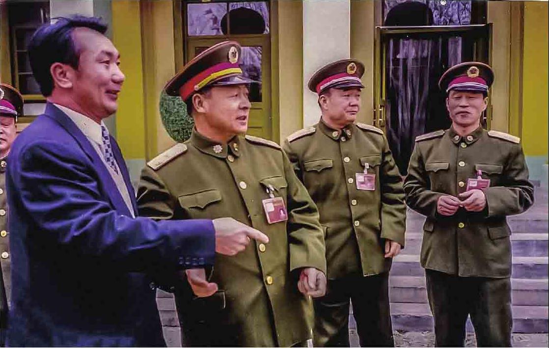 1999年5月,东风航天城司令员张建启(左二)邀请额济纳旗领导商谈基地支持额济纳旗经济建设、生态建设事宜