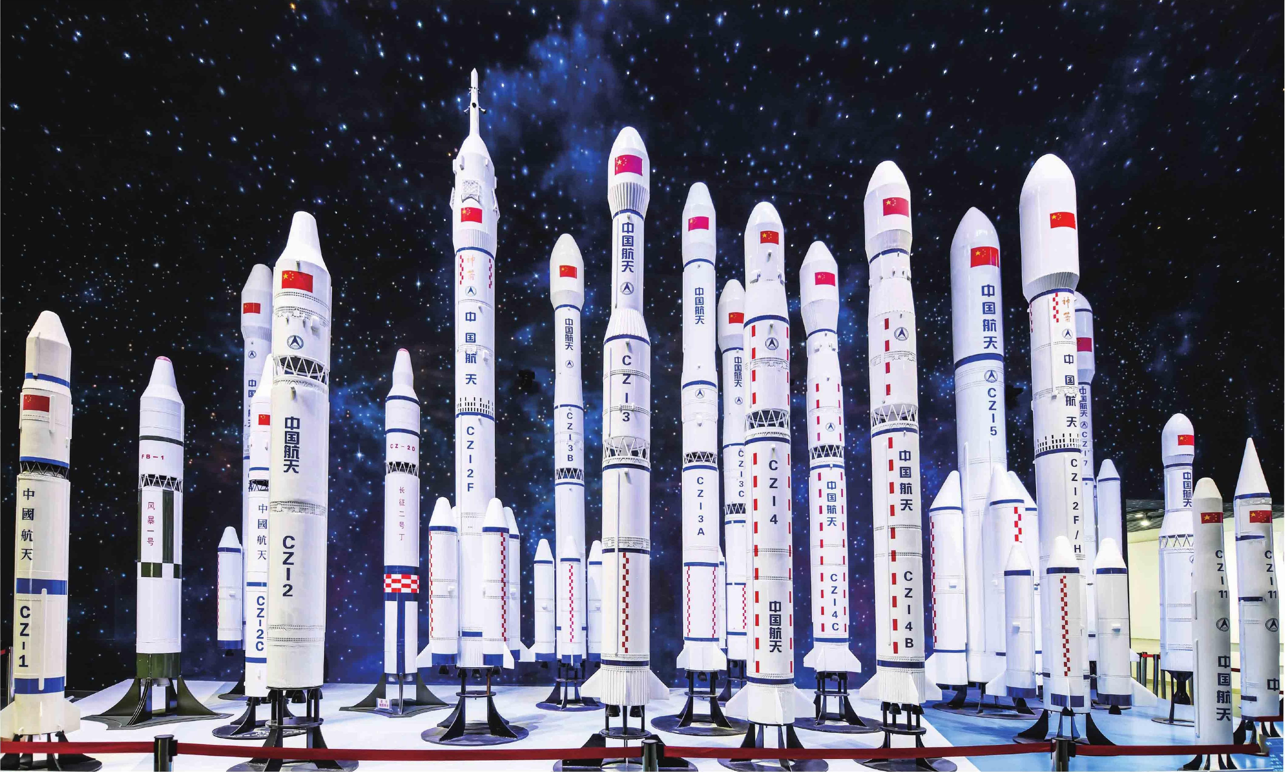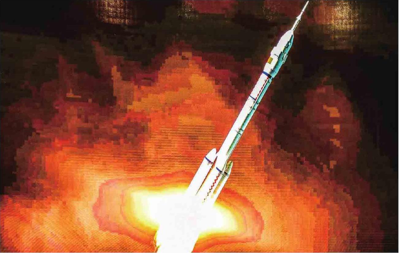 气势磅礴、身姿凌云的神舟、神箭、发射塔