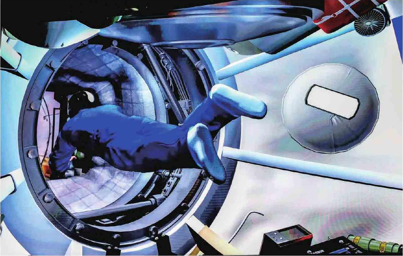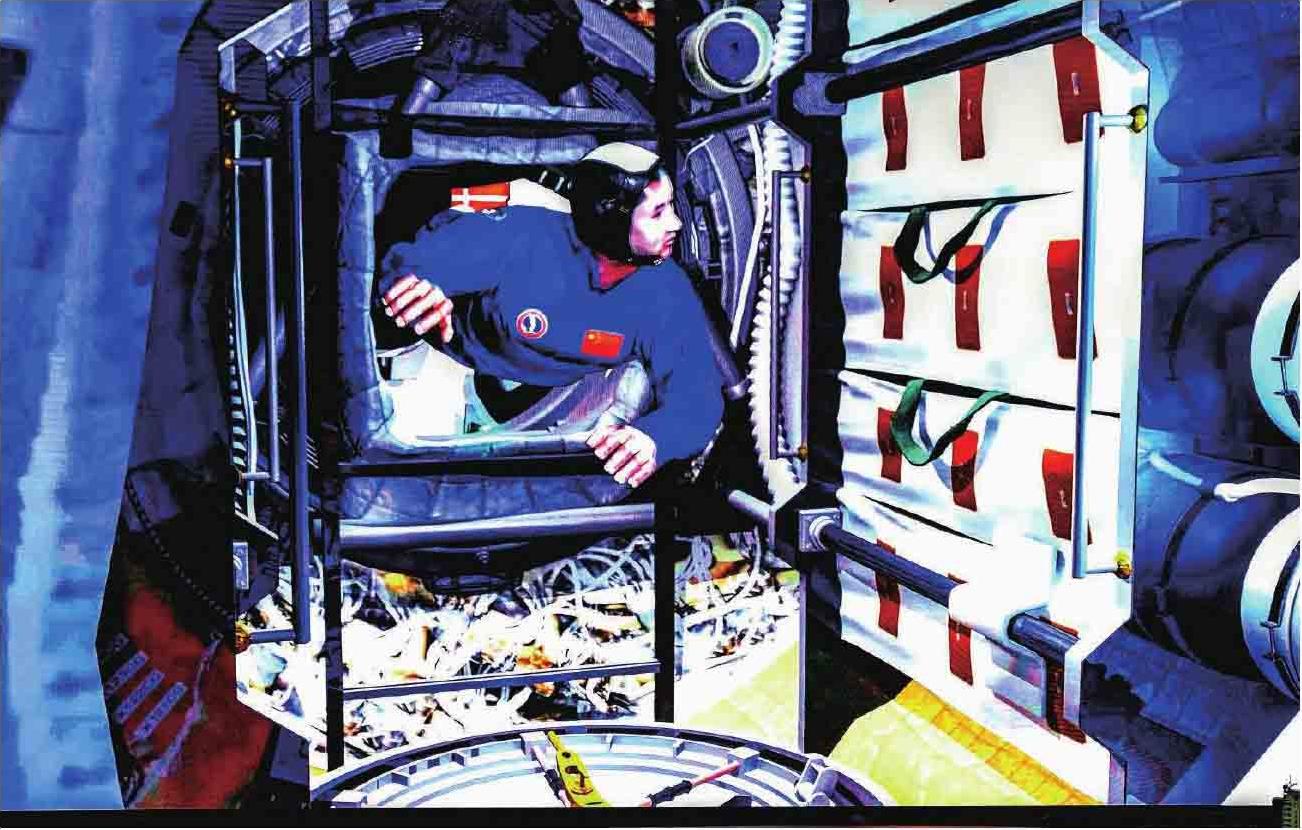 航天员在空间实验室工作(影像图一)