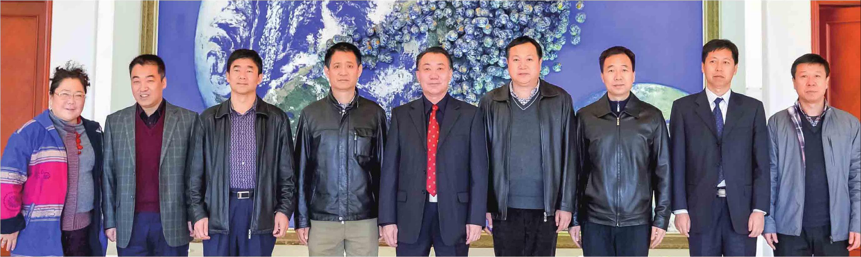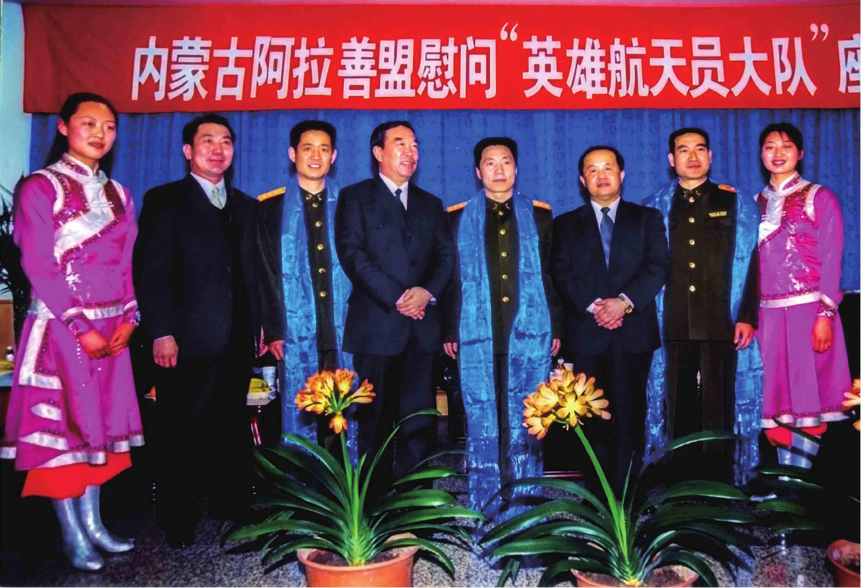 2004年3月,阿拉善盟委书记陶克(左四)、盟长吴金亮(右三)、副盟长巴图朝鲁(左二)等在北京航天中心慰问英雄航天员