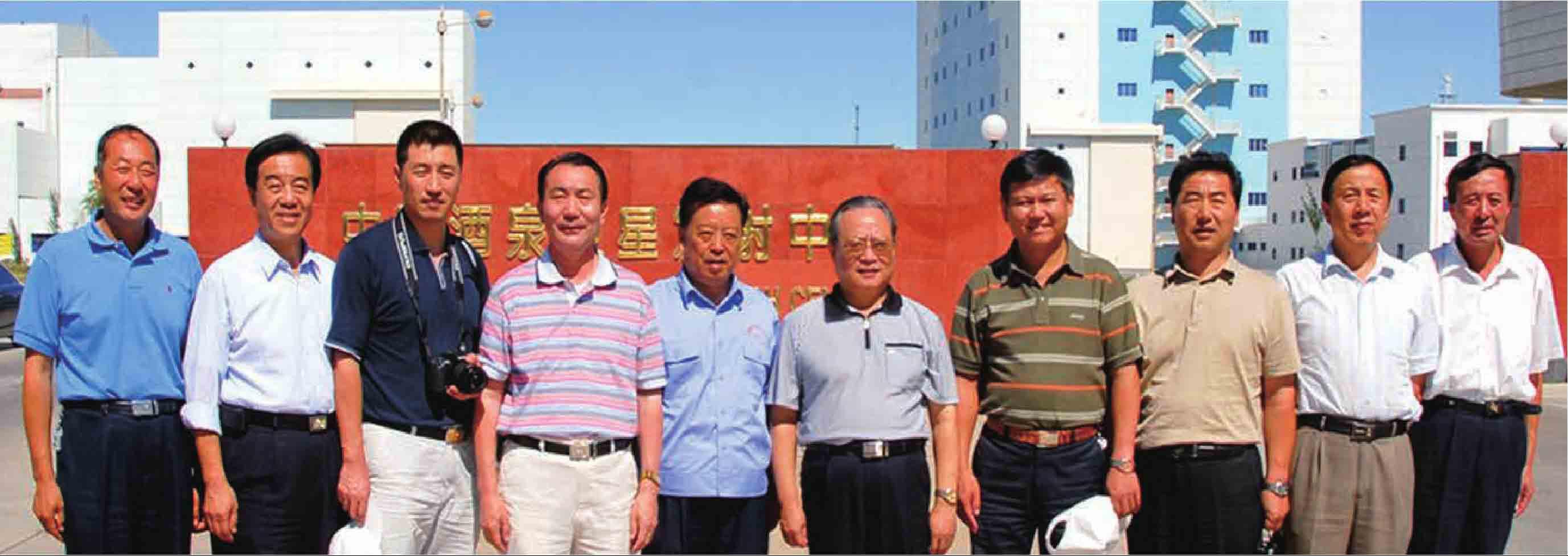 2008年秋,中央政法委副秘书长陈冀平(右五)在东风航天城政委刘克仁(左五)等同志的陪同下参观东风基地