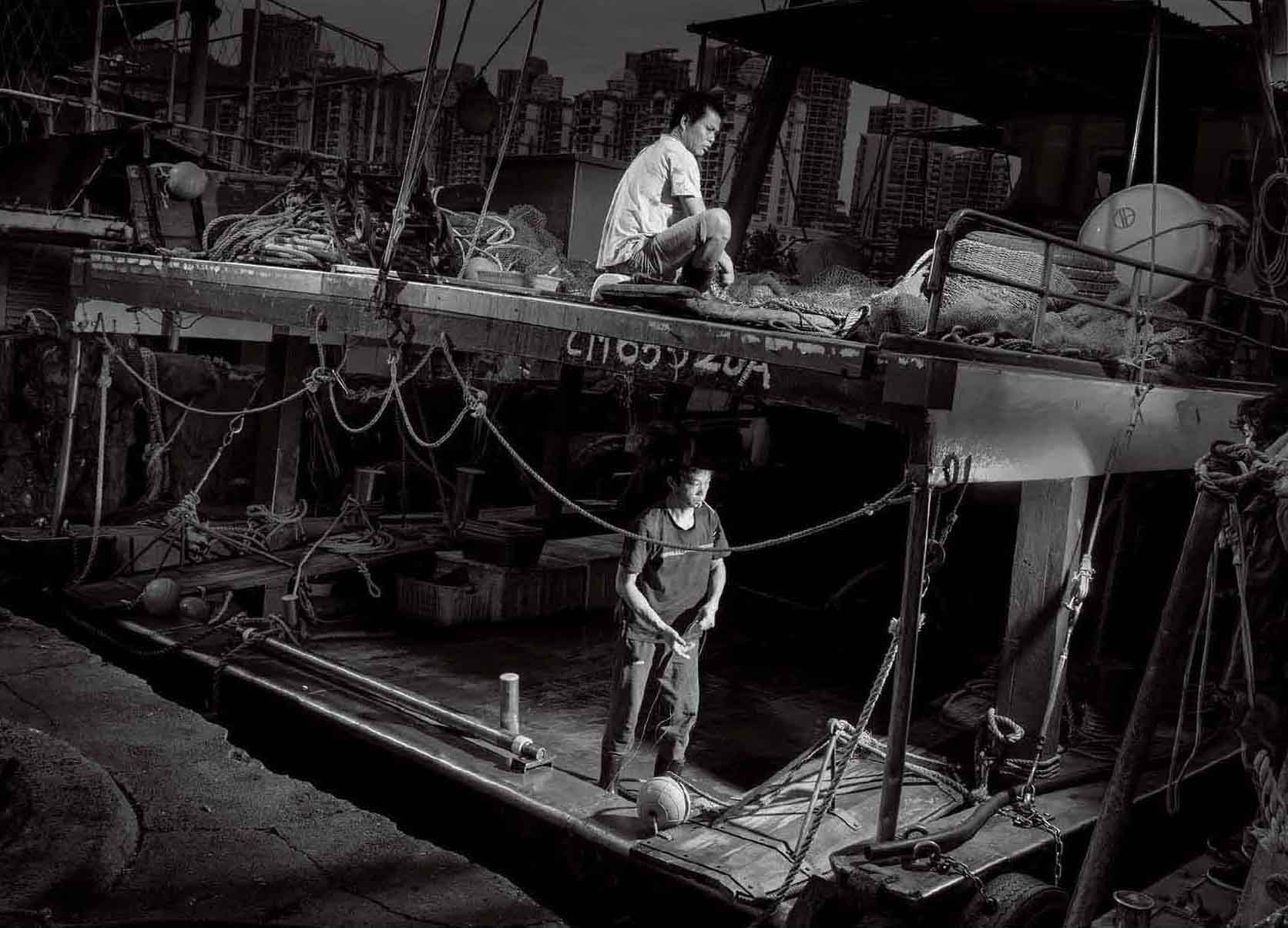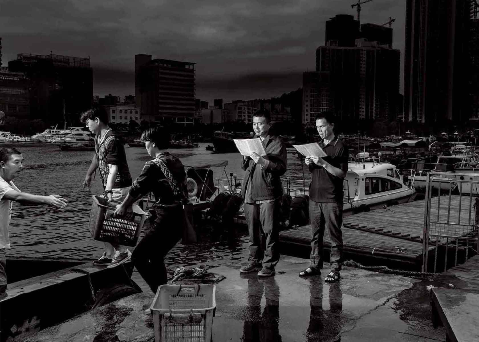 亚利克斯富有创意的拍摄风格也影响了他观看深圳的方式。黑白抽象的建筑,发廊门前晨起喊话的员工们,或是蛇口渔港前放生的学生们,再或是用声音创作出的作品……第一眼看向他的作品,我们总会想象成别的场景。精妙的、好似舞台设计的影像,欺骗了我们的眼睛;隆重的光影和最为日常的举动结合,契合着这座城市些许的荒诞,些许的表演欲和些许的迷思。这些独特的影像呈现和逻辑既是一种承袭又是被干预的结果。和克里斯托弗认为自己突破了图片摄影的风格一样,亚利克斯的艺术表现也同样受到了深圳艺术机构的鼓励和推动。