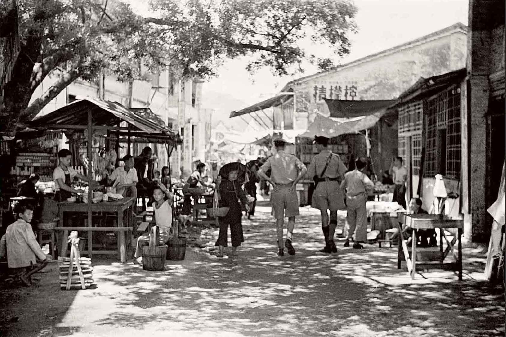 英国军官走过中国沙头角边境的村落,1949年后,哈里森·福尔曼