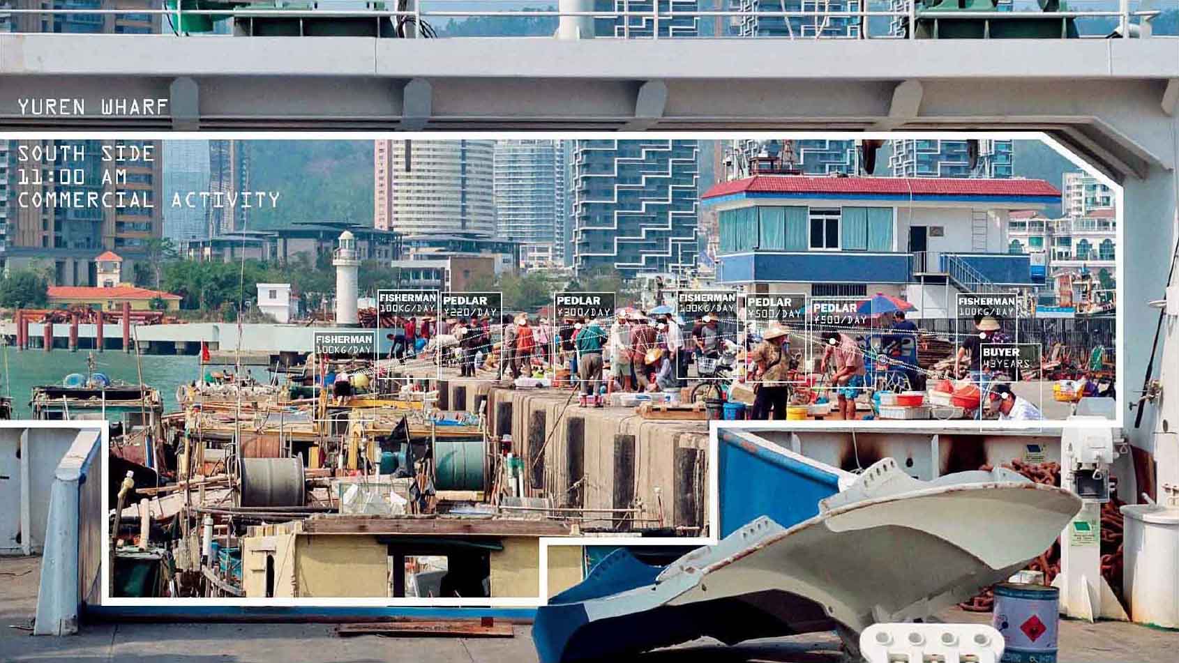 24 Scan Lab使得被剥夺了实体的蛇口渔港变成了数字遗产。在现代技术之下,24 Scan Lab不再满足于用纯粹的文字、图片和影像等形态让人们被动观看,而是用三维方式呈现蛇口渔港的形态转变,让人们感知空间。当虚拟和现实分离时,数字技术成为解决真实性的方法。24 Scan Lab这样介绍自己的项目:“项目应用了前沿的三维空间感知技术和航空倾斜摄影测量技术,以飞行器作为空中飞行操作平台,搭载多台影像传感器,从空中同时获取被测物体的垂直和倾斜等多角度、高重叠度、高分辨率序列影像,并用计算机对影像数据信息进行加工处理获取被测物体的三维数据。”然而,当以虚拟空间精准地刻画出城市的变迁后,我们是否就能坦然地沉浸在线条带来的利落感中?被翻新过的、井然有序的、充满现代美感的城市景观覆盖了历史的斑驳底色,城市的记忆不断地坍塌和模糊,属于它的脉络断裂,只剩下被精心构建的符号和意象。