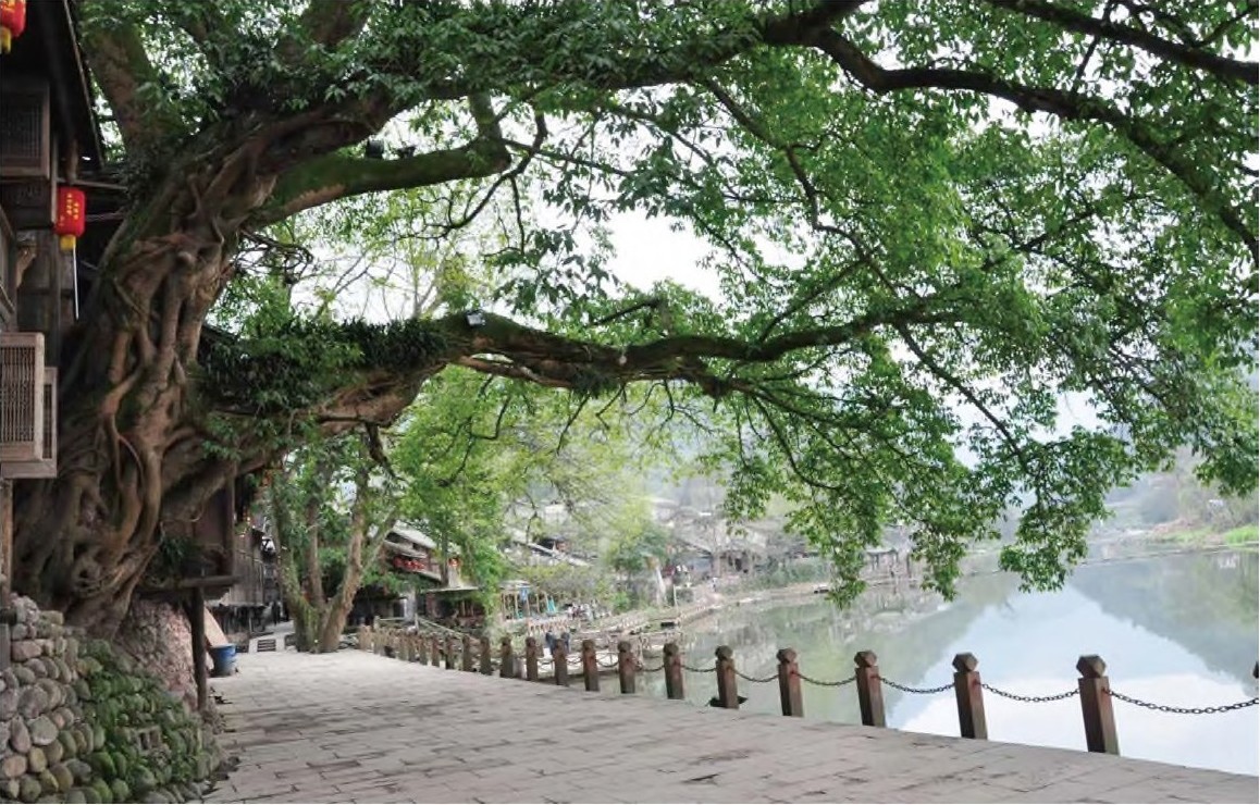 走在青石板铺成的老街上,两边有从河中引入的流水槽,便于用水、排雨。有的餐馆索性将活鱼网在里面,保鲜保活,随吃随有。在街边小馆,要上两瓶啤酒,点上一道红辣鲜美、川味十足的香锅雅鱼;酒足饭饱,再面对颇有名气的九大碗,只能望菜兴叹了。