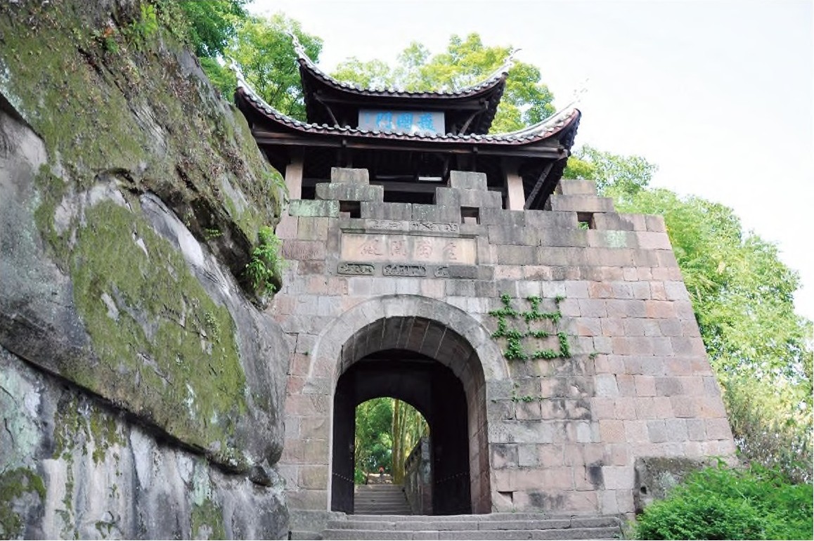 嘉陵江、渠江、涪江三江之水在合川交汇,钓鱼城临江而建,形成咽喉般的天然屏障。护国门左倚绝壁,右临深渊,门楼上依稀可见四个刻字:全蜀关键。