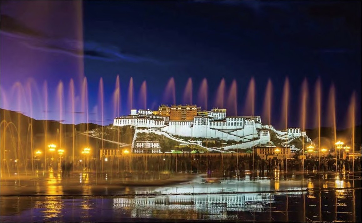 水幕下的布达拉宫流光溢彩