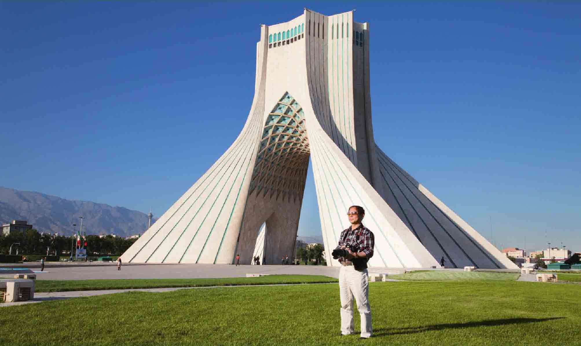 作者在德黑兰阿扎迪自由纪念塔前留影,此塔为庆祝波斯帝国建国2500周年而建
