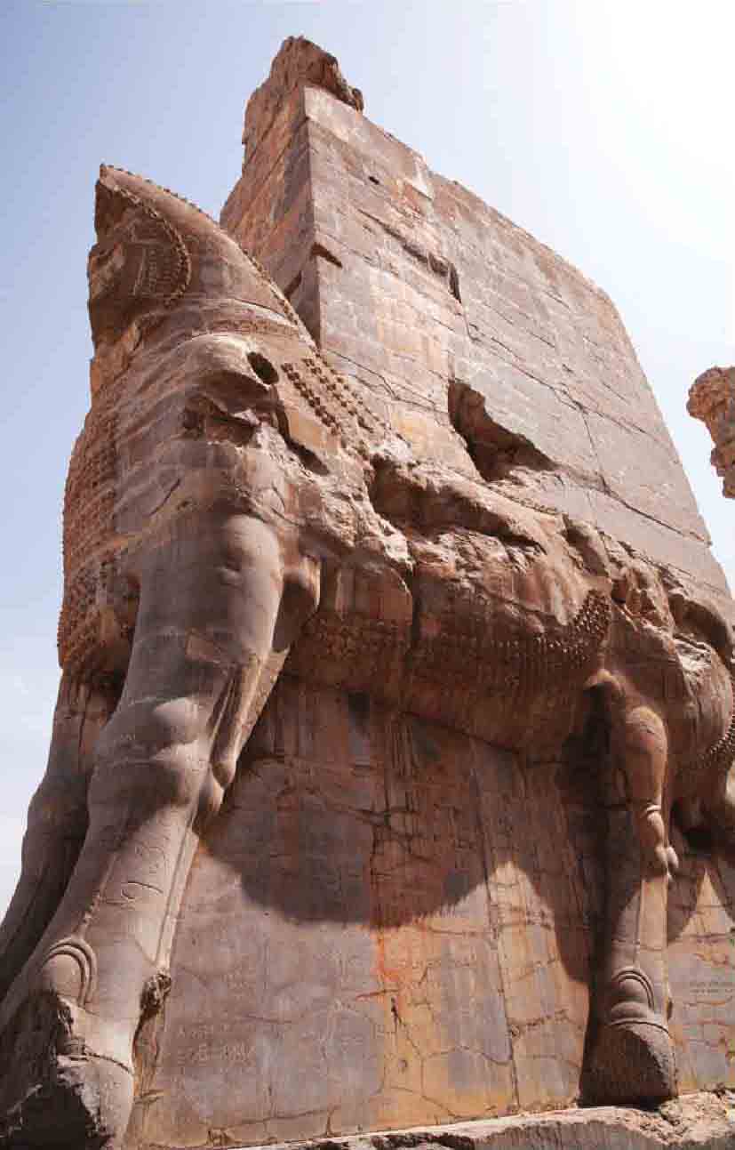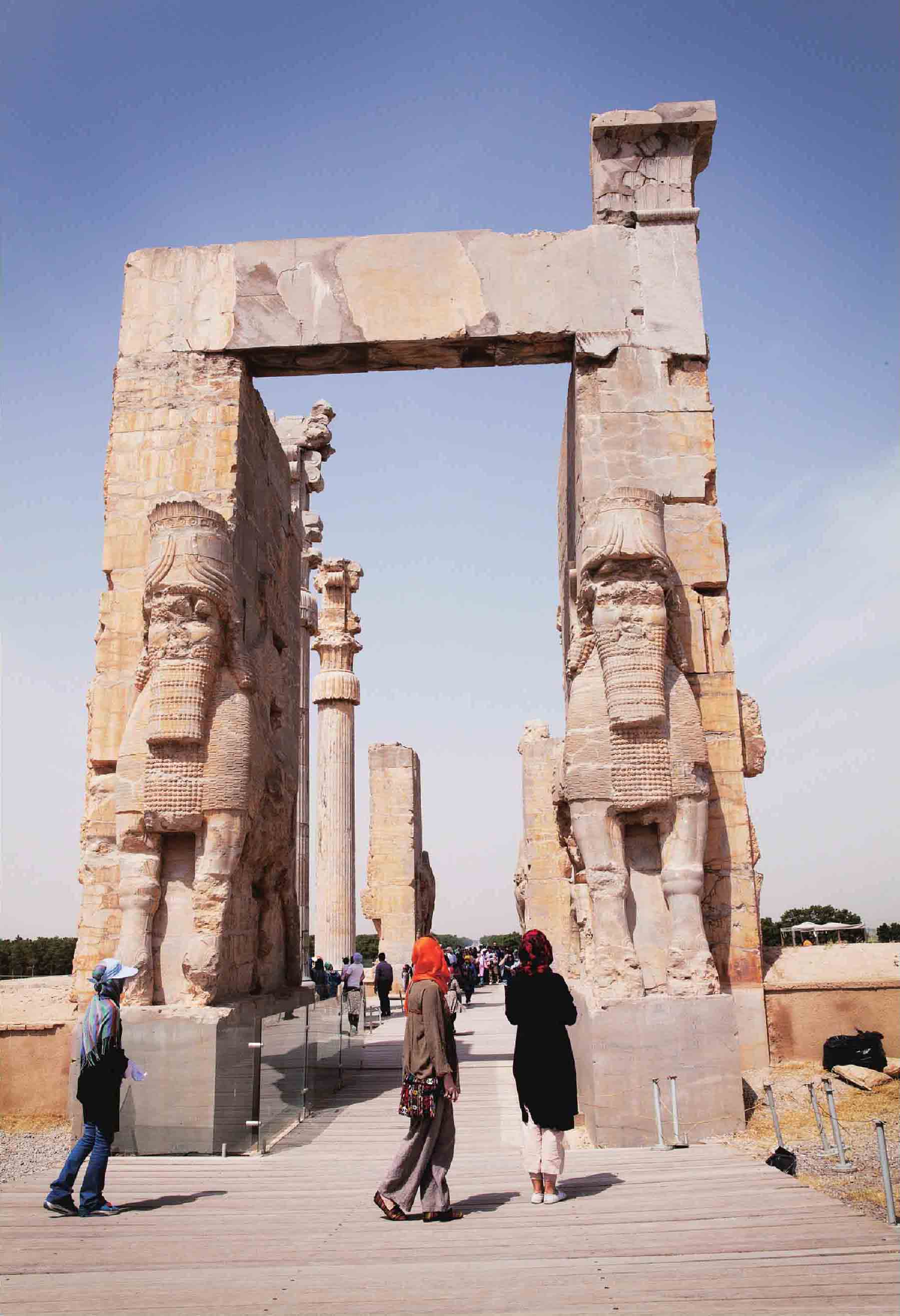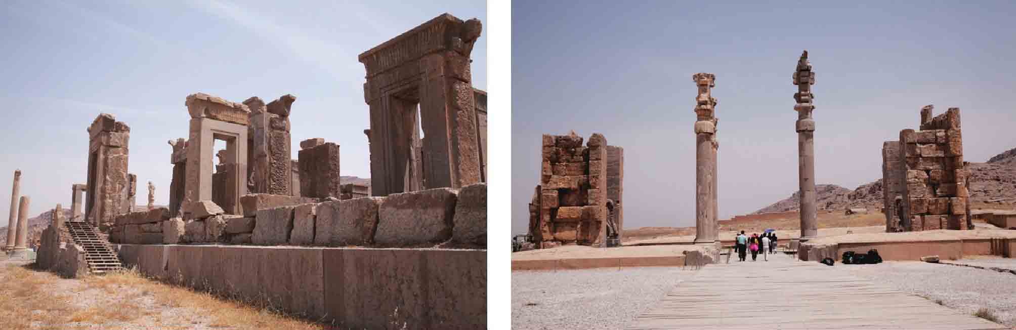 波斯波利斯宫殿遗址立柱雕像(中左、中右图)