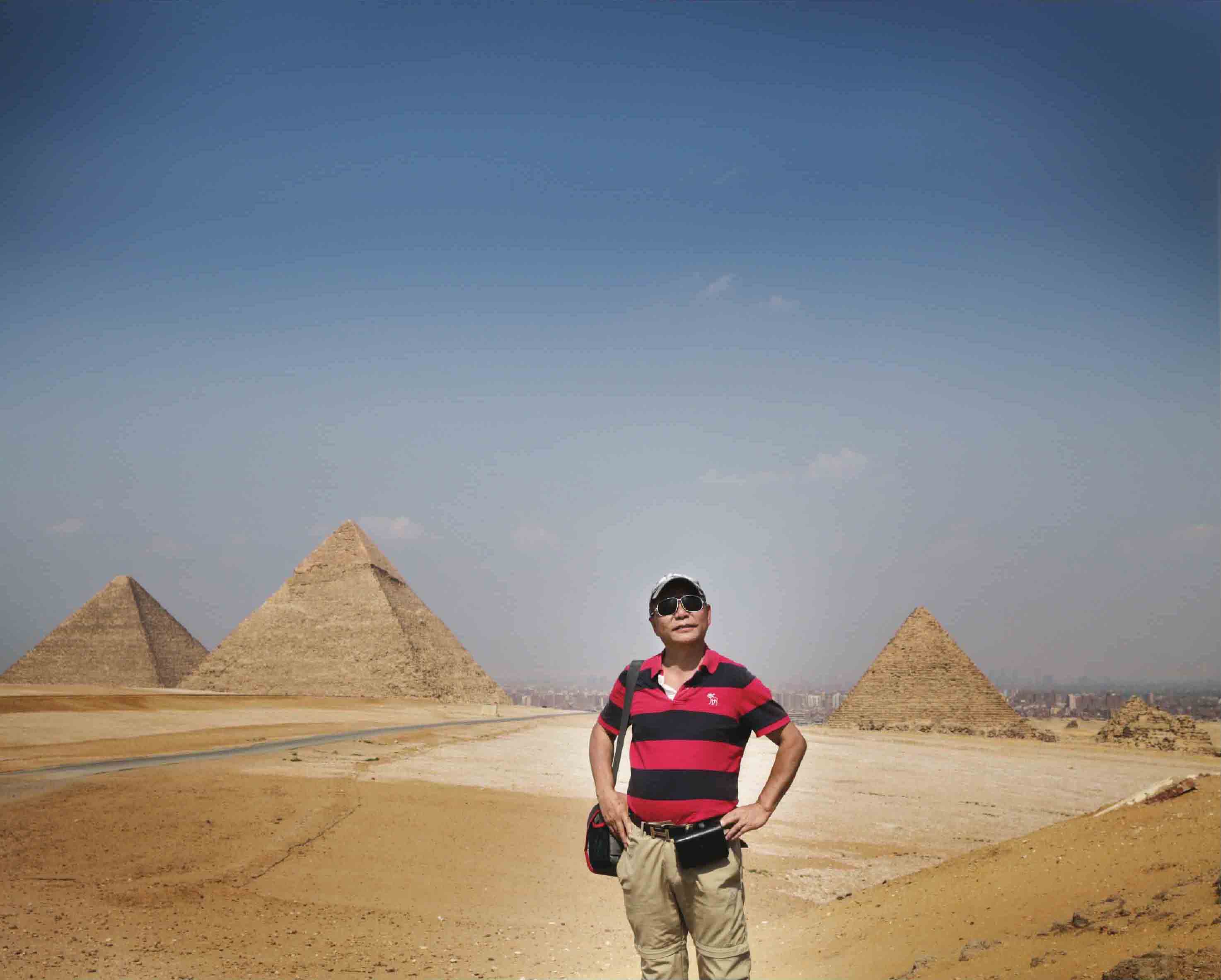 世界七大奇迹之一的吉萨金字塔群(作者在此留影)