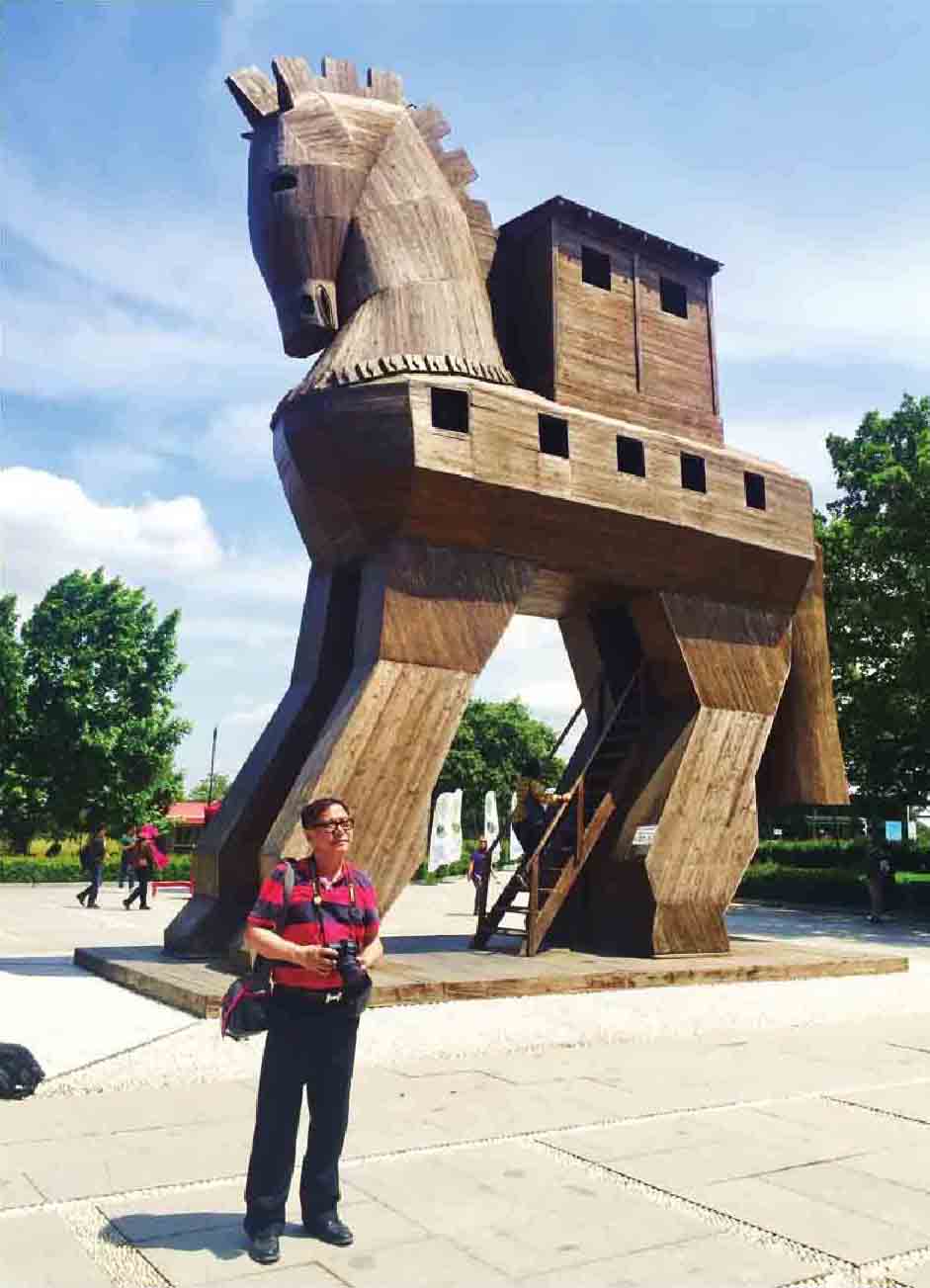 作者在特洛伊战争木马模型旁留影