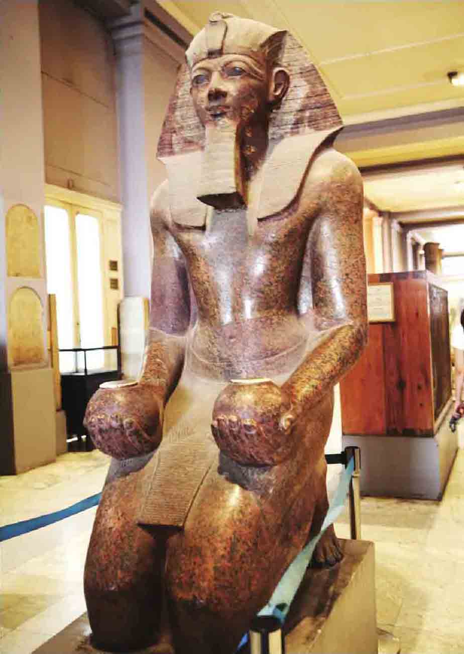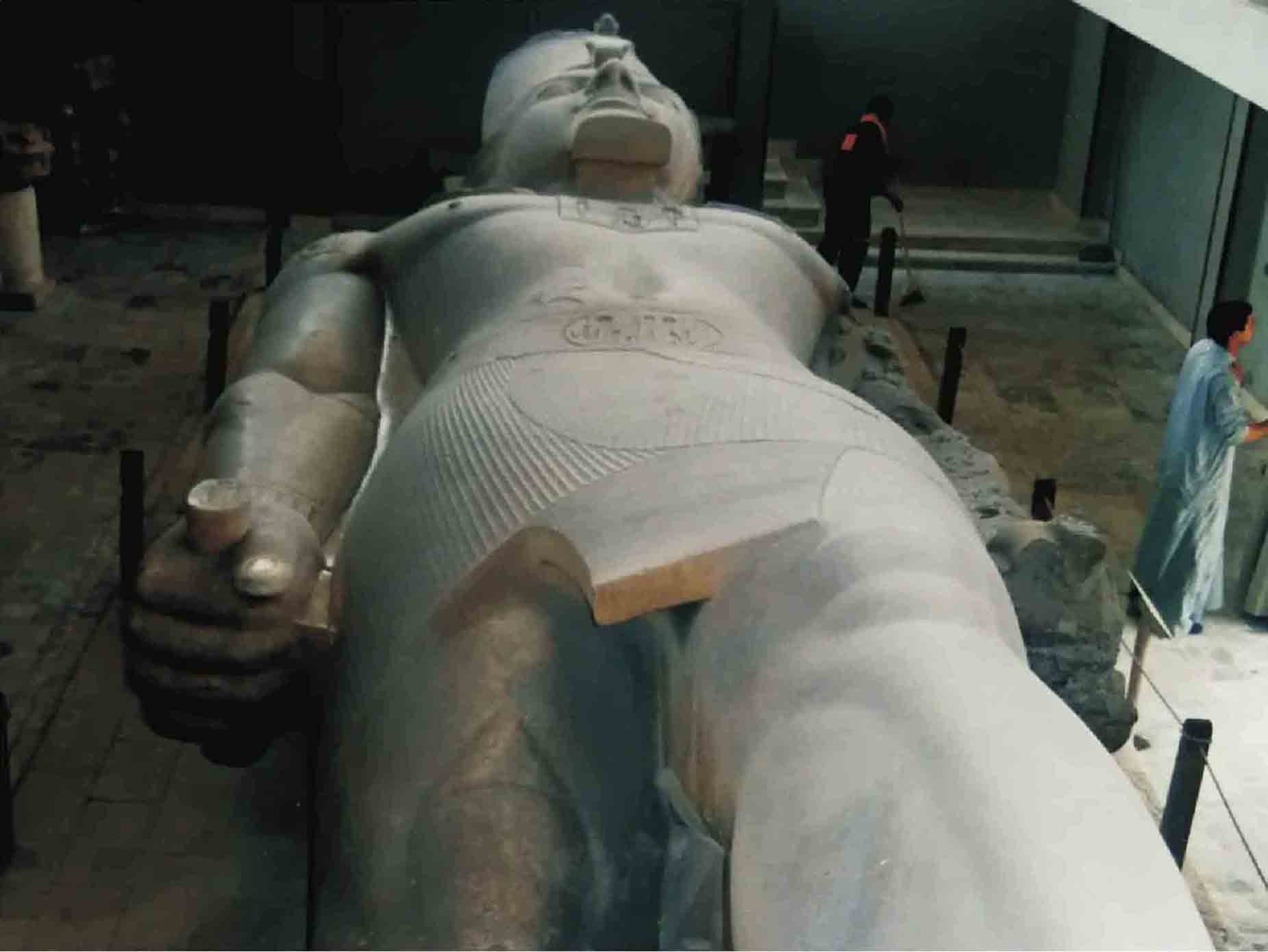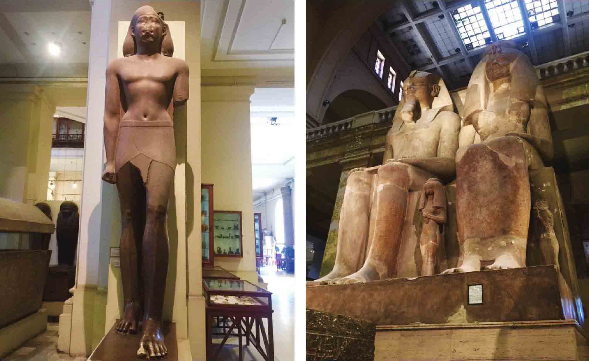 埃及国家博物馆展出的巨型法老雕像(下左、下右图)