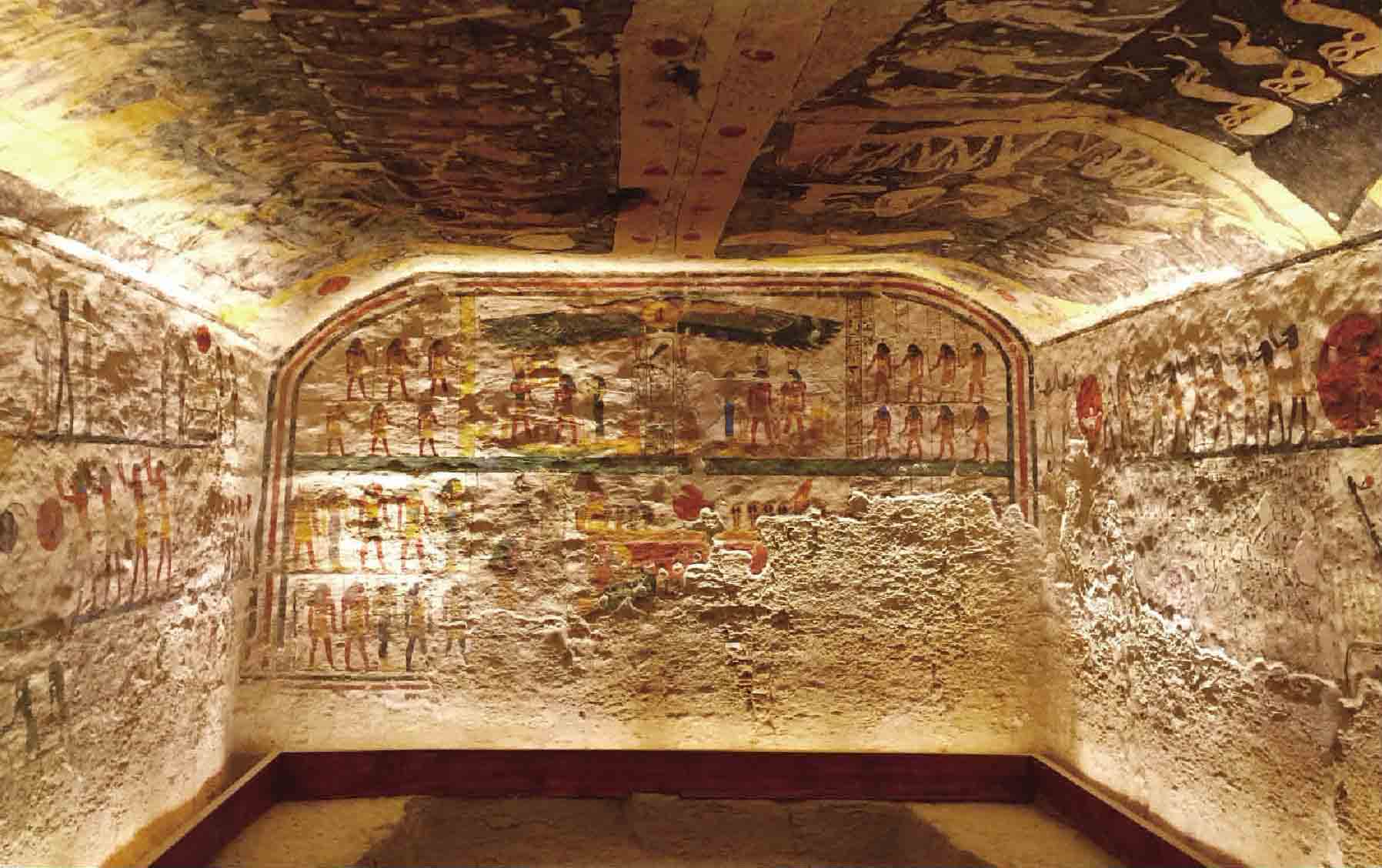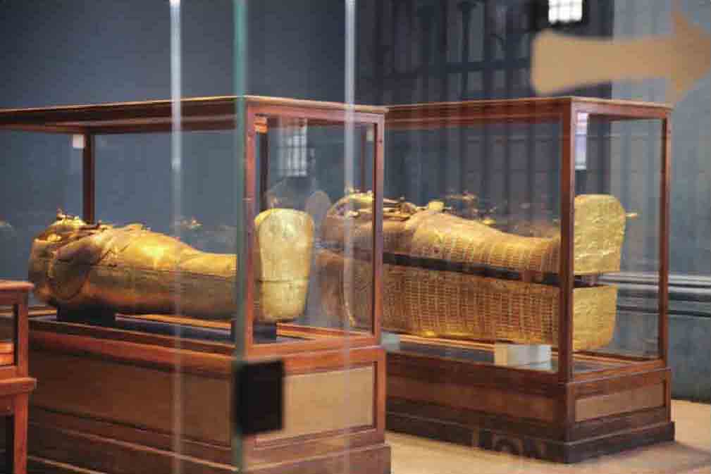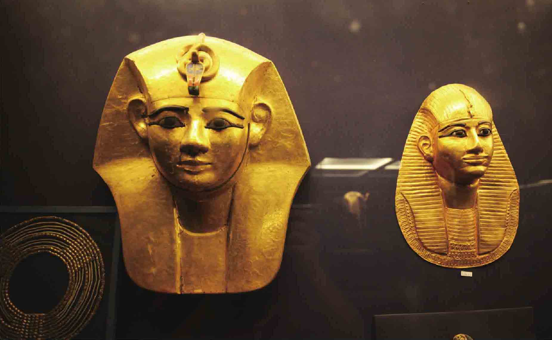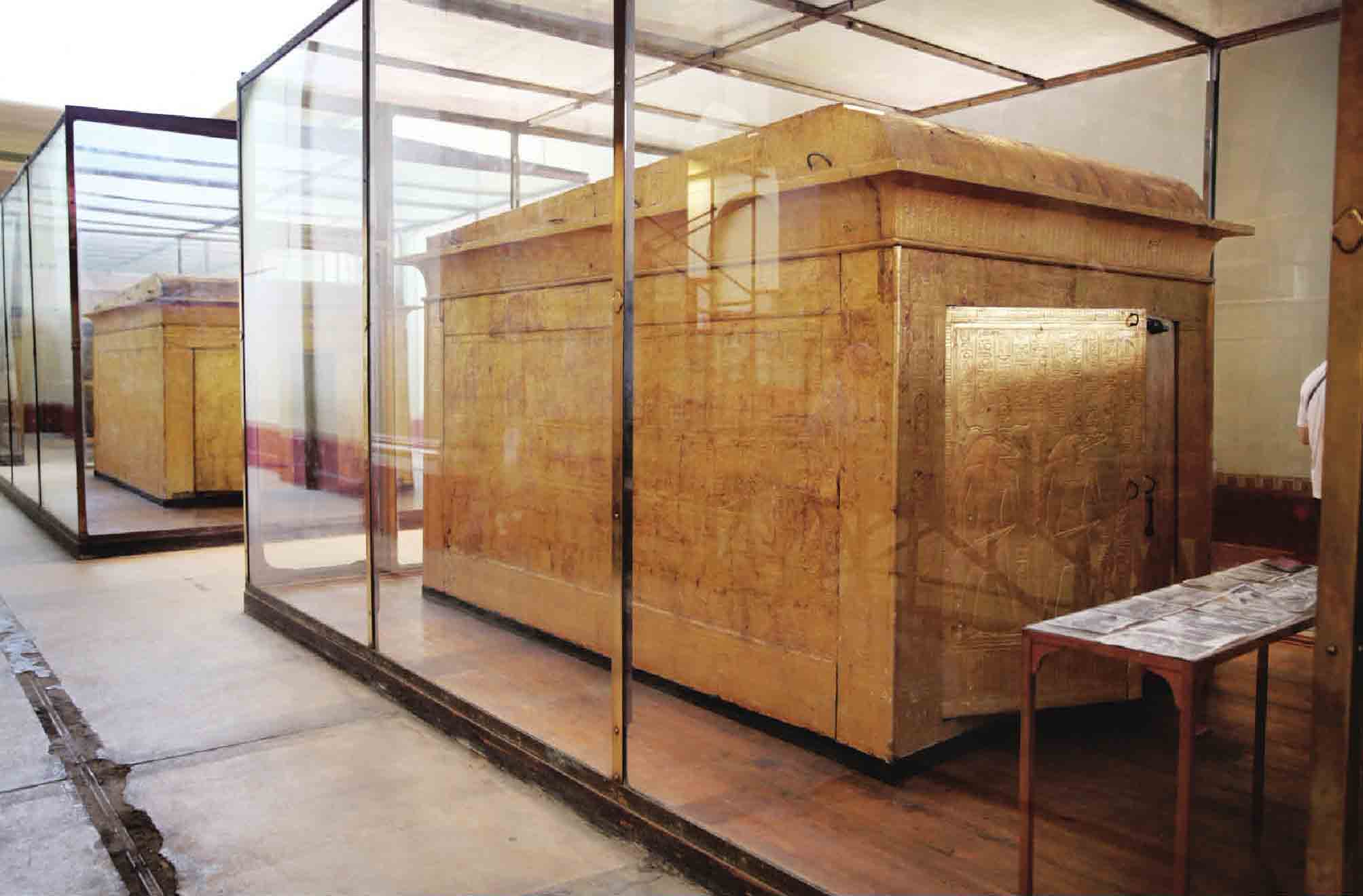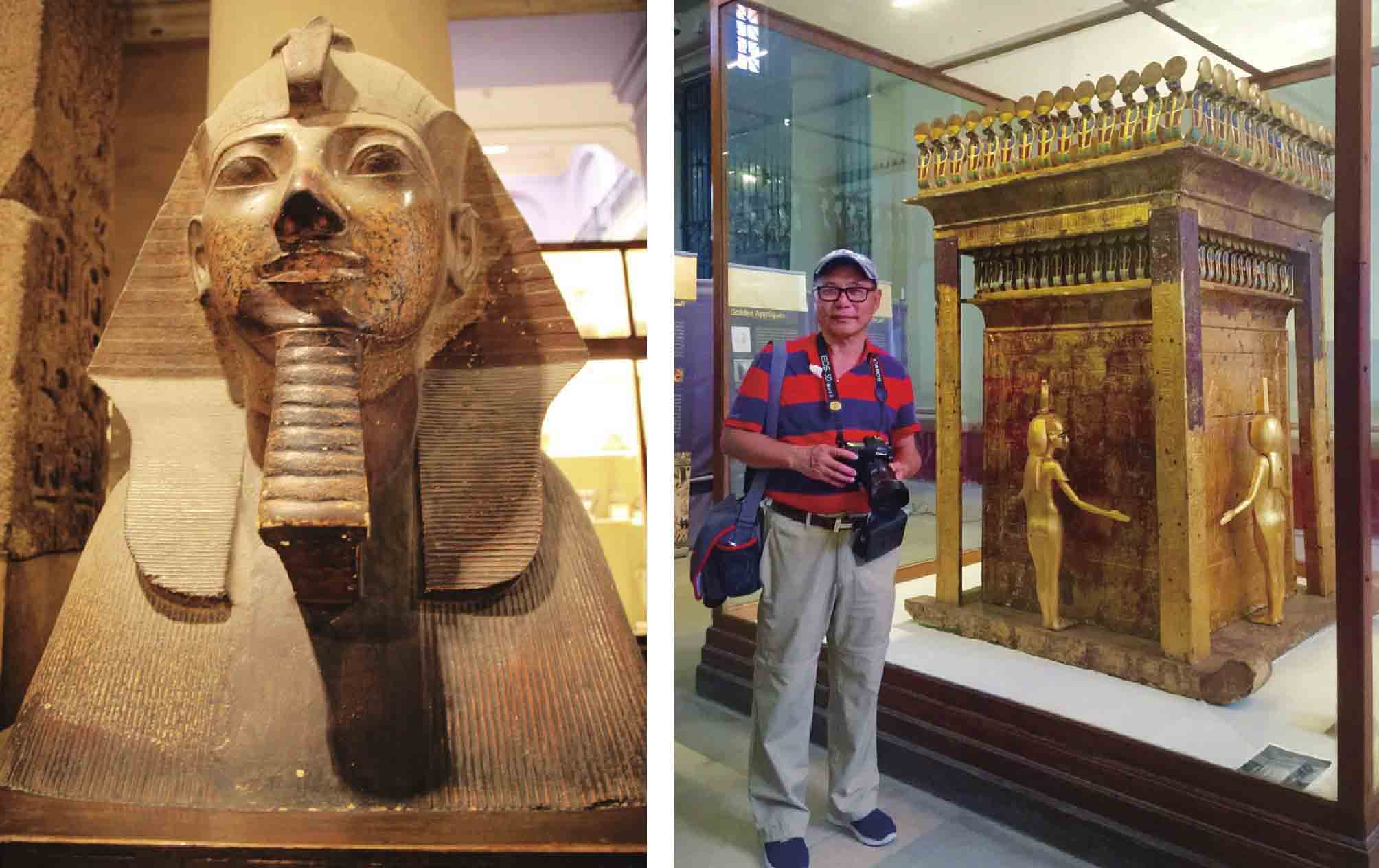 法老图坦卡蒙墓出土文物(上左、上右图,其中上右图为作者在此留影)