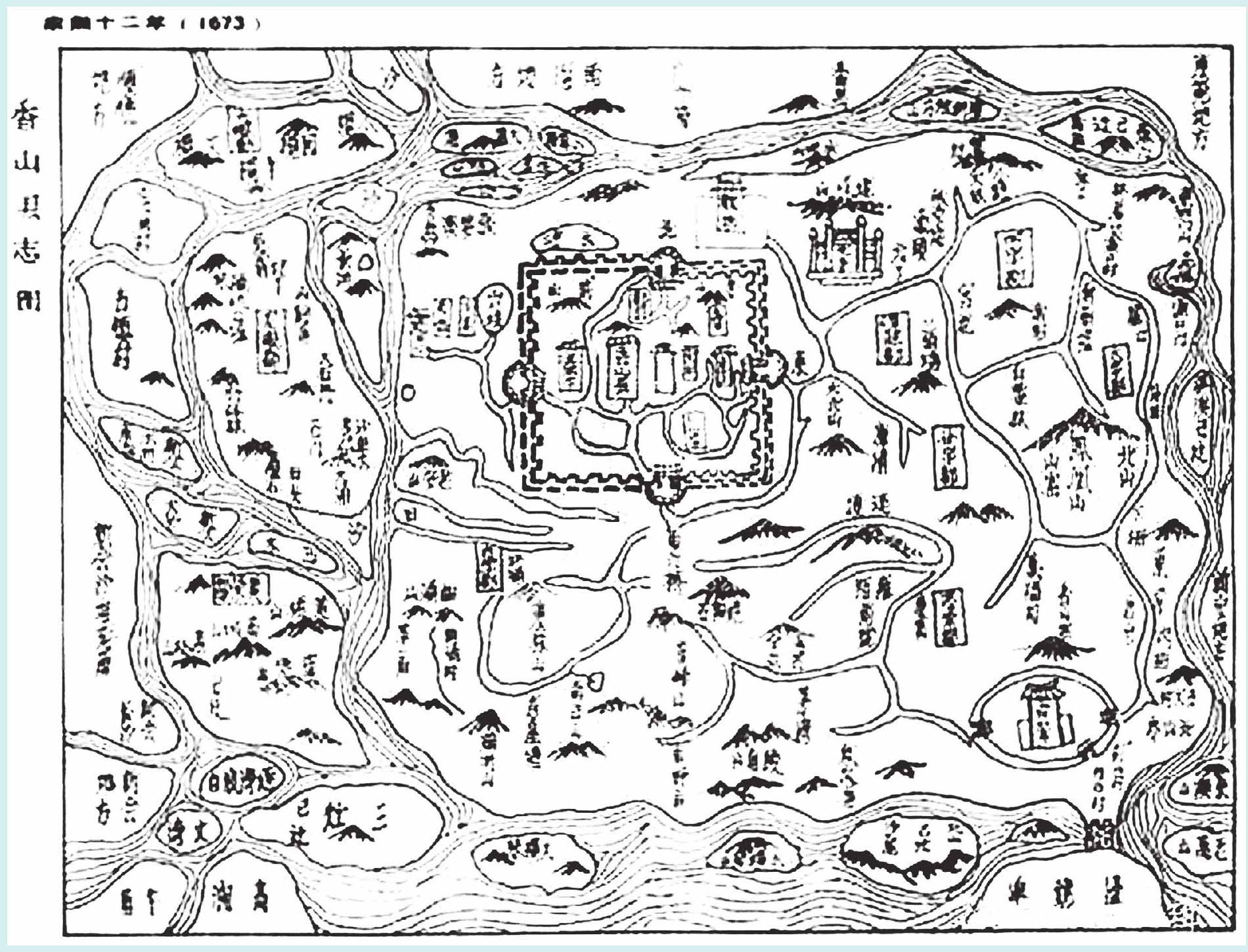 Map of Xiangshan County in 1673 AD, the 12th year during the reign of Emperor Kangxi in the Qing Dynasty, Annals of Xiangshan County