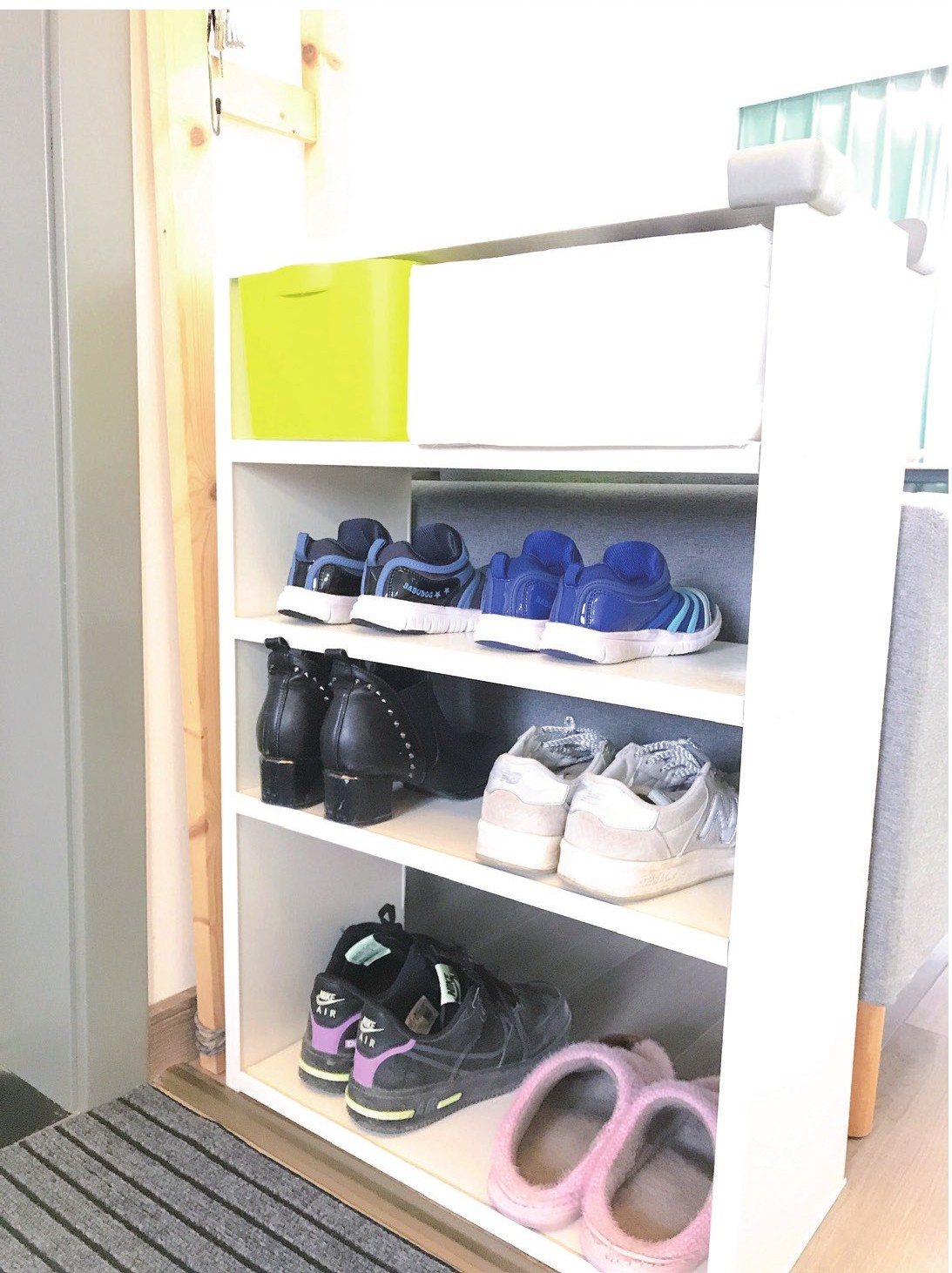 我们家到现在也是没有玄关,就放了一个简单的鞋柜。用来放拖鞋和当季要穿的鞋子,我家的鞋子是真得少,一个季节每人也就两双鞋子。小孩子好动比较费鞋,会多准备一双。小柜子是全开放的,换鞋之后直接把鞋子放进柜子,完全没有开关柜门的繁冗动作,所以从来不会出现家门口一堆鞋子的状况。