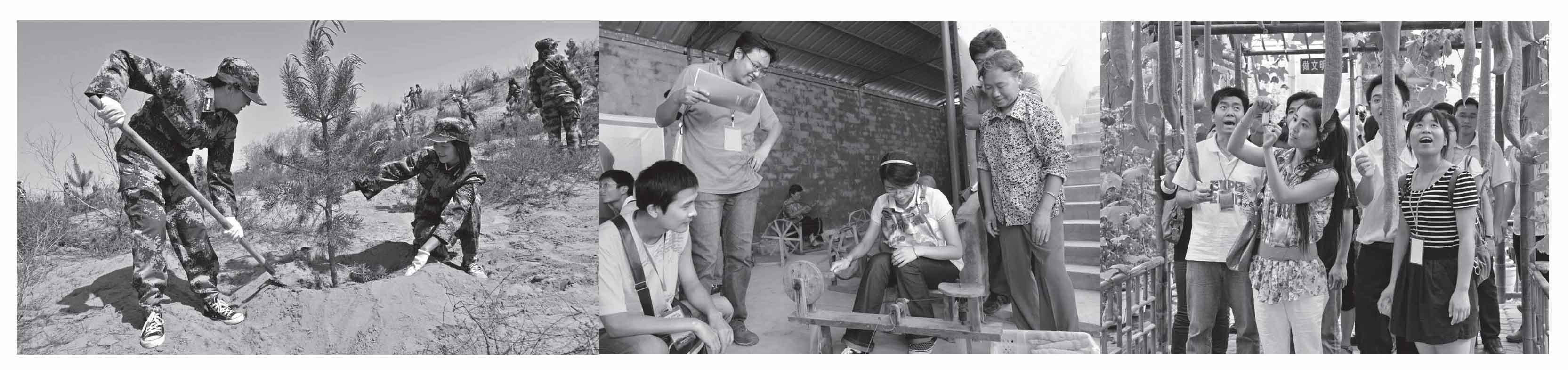 (左)2015年5月,陕西省榆林市榆阳区武装部组织参加军训的女大学生村官在植树。