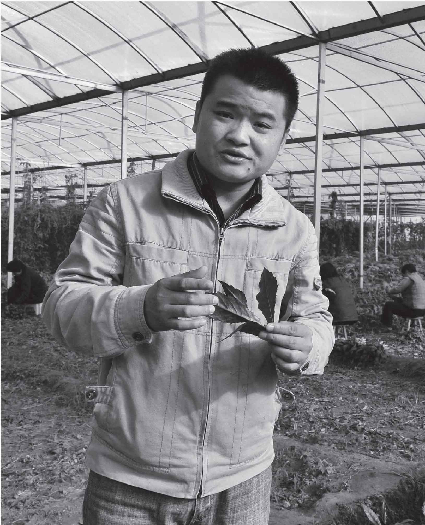 ●2011年4月,胡建党正在向来宾介绍种植经验。
