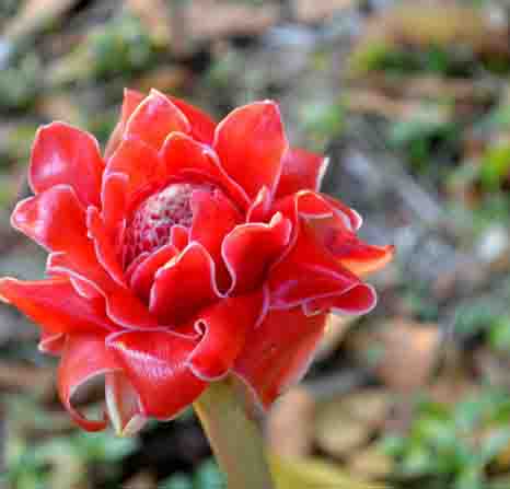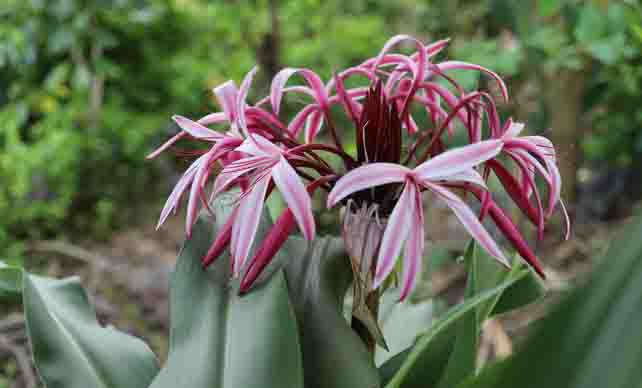 百草园里,搭建了许多造型别致的人工花架,颜色鲜艳的红色炮仗花伸出长长的触角,附着在花架之上,形成极具喜庆意味的圆球、方形、条状造型。炮仗花花期特长,似乎常年都在开放,一朵谢了,旁边的另一个骨朵儿又张开了花瓣,花架上常年都是吉祥喜庆的红色。周围花架上,悬吊着各色兰花、鹿角蕨、鸟巢蕨等附生花卉和观叶植物,营造出一座座空中花园,与地面上栽培的叶子花、紫薇、紫荆、跳舞草等一起,形成一个错落有致、相互辉映的立体花园。红的、黄的、粉的龙舟花开足马力,从3月一直开到12月。单薄的十字花开着开着,就凑成了一簇簇,聚成了一团团。