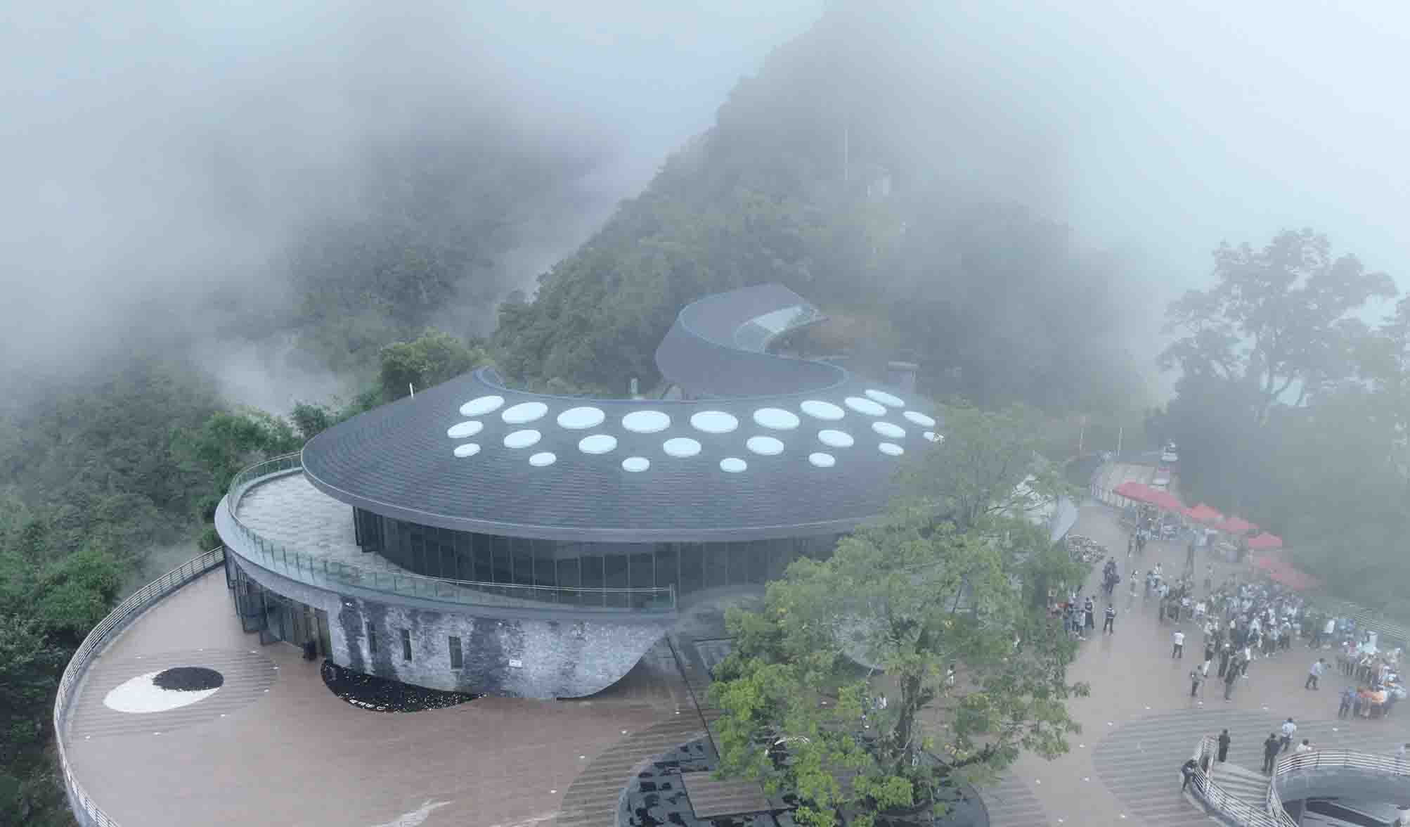 从石月亮乡“反帝桥”启程,经过傈僳族寨子米俄洛村一路盘旋上升,公路两旁葱绿的树木、鲜艳的山花、蓬蓬竹丛映入眼帘,想去触摸大自然带给人类的盎然绿意、芬芳花朵,但咫尺之遥的观景台深深吸引着你,而你却不得不放弃眼前的景色,不停驱车向高处驶去。拐过一个箐沟,一个奇特的建筑物豁然出现在眼前。这是2023年下半年才建成并投入使用的“怒吃咂”观景台。观景台仿自然奇观石月亮以及傈僳族妇女头帕“欧冷”为模型而建造,浑圆雄壮、风格独具、气势磅礴,建筑物内部设有民俗陈列室、商品售卖部、饮食服务部,靠东是宽敞的观景平台,靠西是旅游厕所。