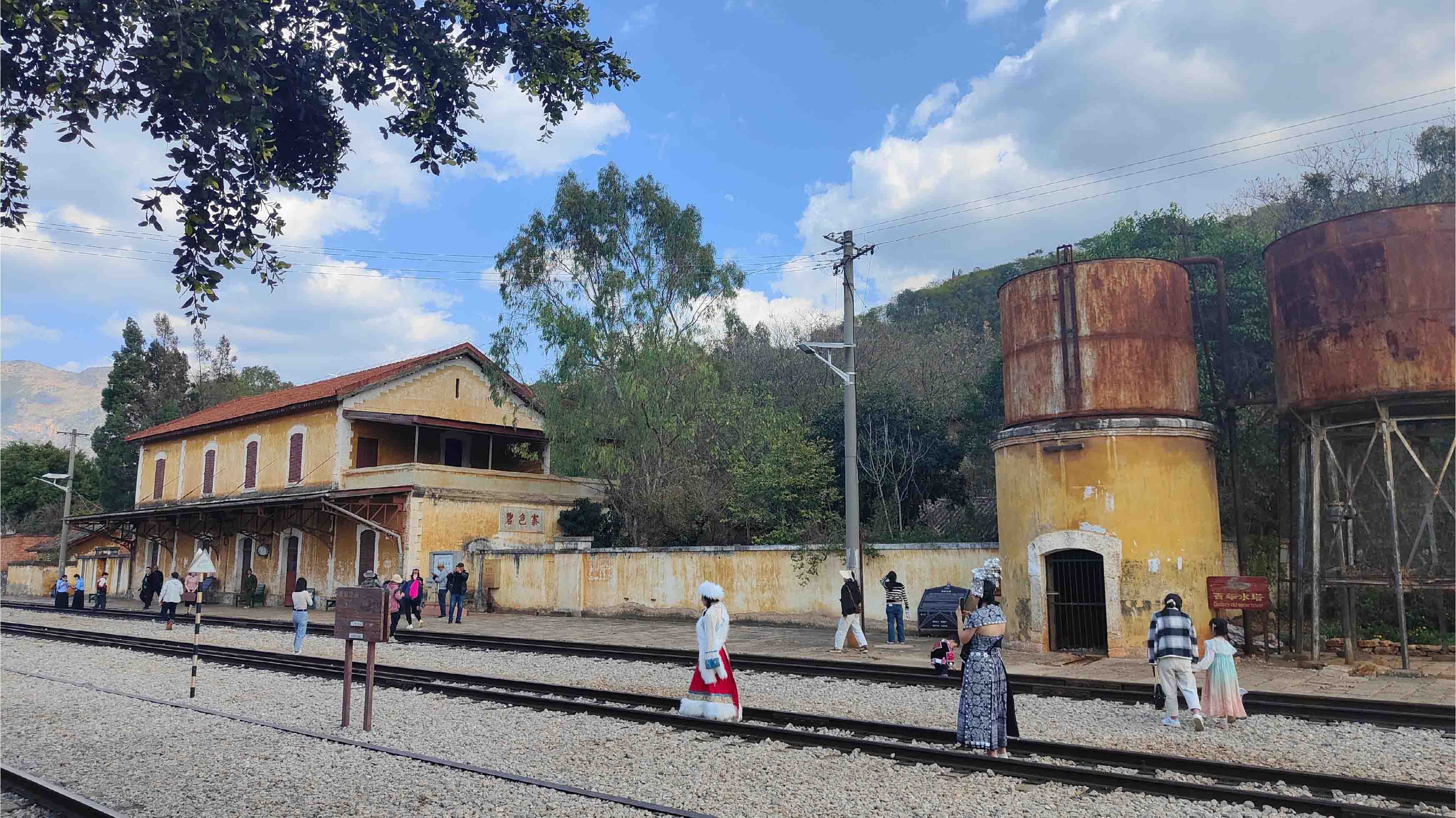 漫步在今天的碧色寨,随处可见穿着民国时期学生装的游人穿梭在碧色寨的车站附近,人们就这样在窄窄的米轨间走来走去,仿佛碧色寨从来没有年轻过,也从来不曾老去,碧色寨就一直在那里。
