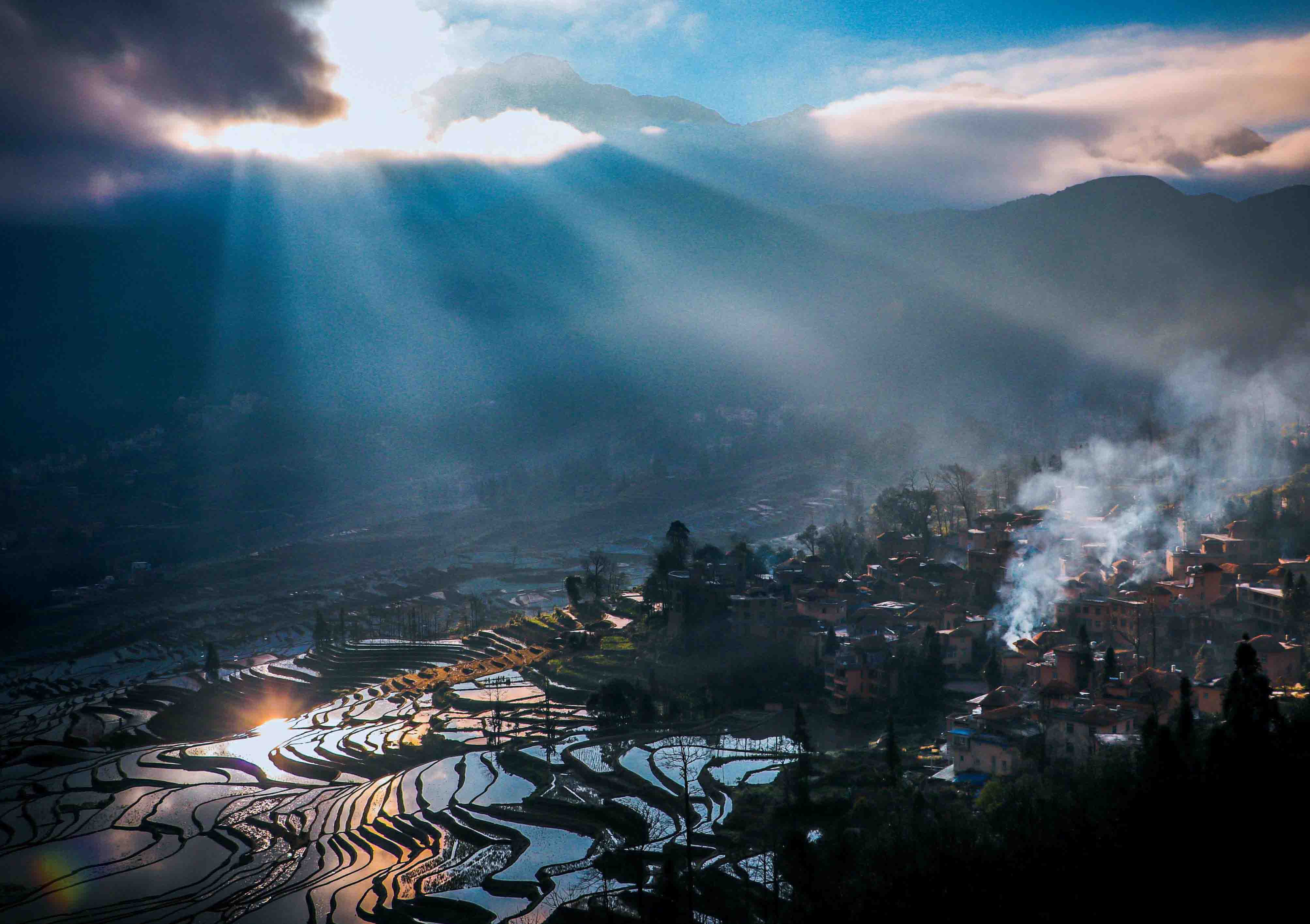 多依树最美的时刻,就是日出的刹那。从日出前一刻钟,至第一束阳光刺穿云层,这真是摄影的黄金时间,多依树梯田将会在这一瞬间,完成一次最美光影的呈现。