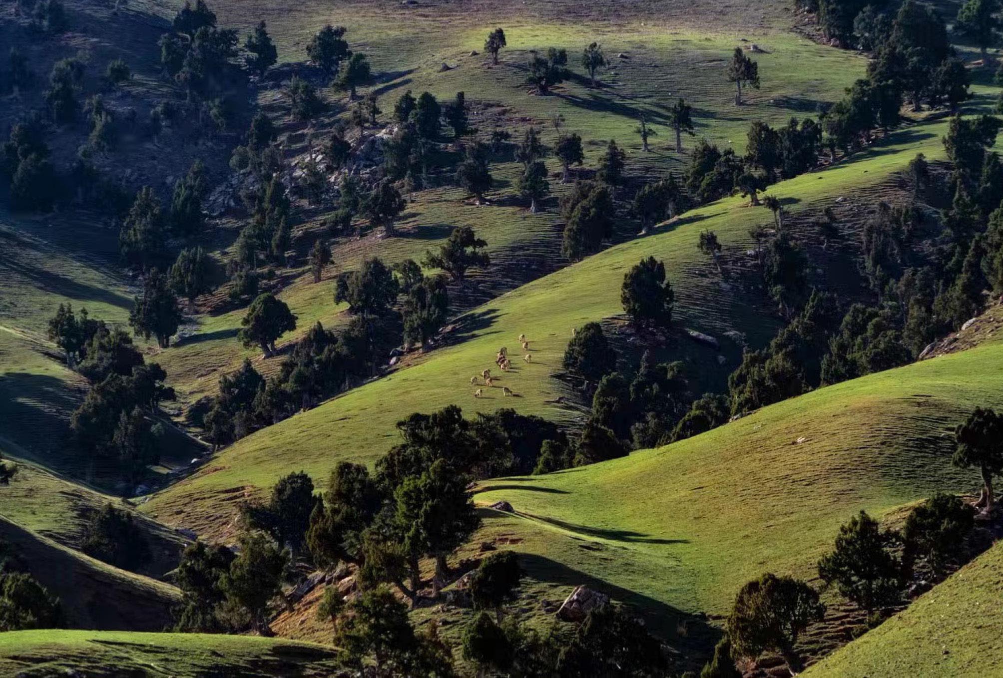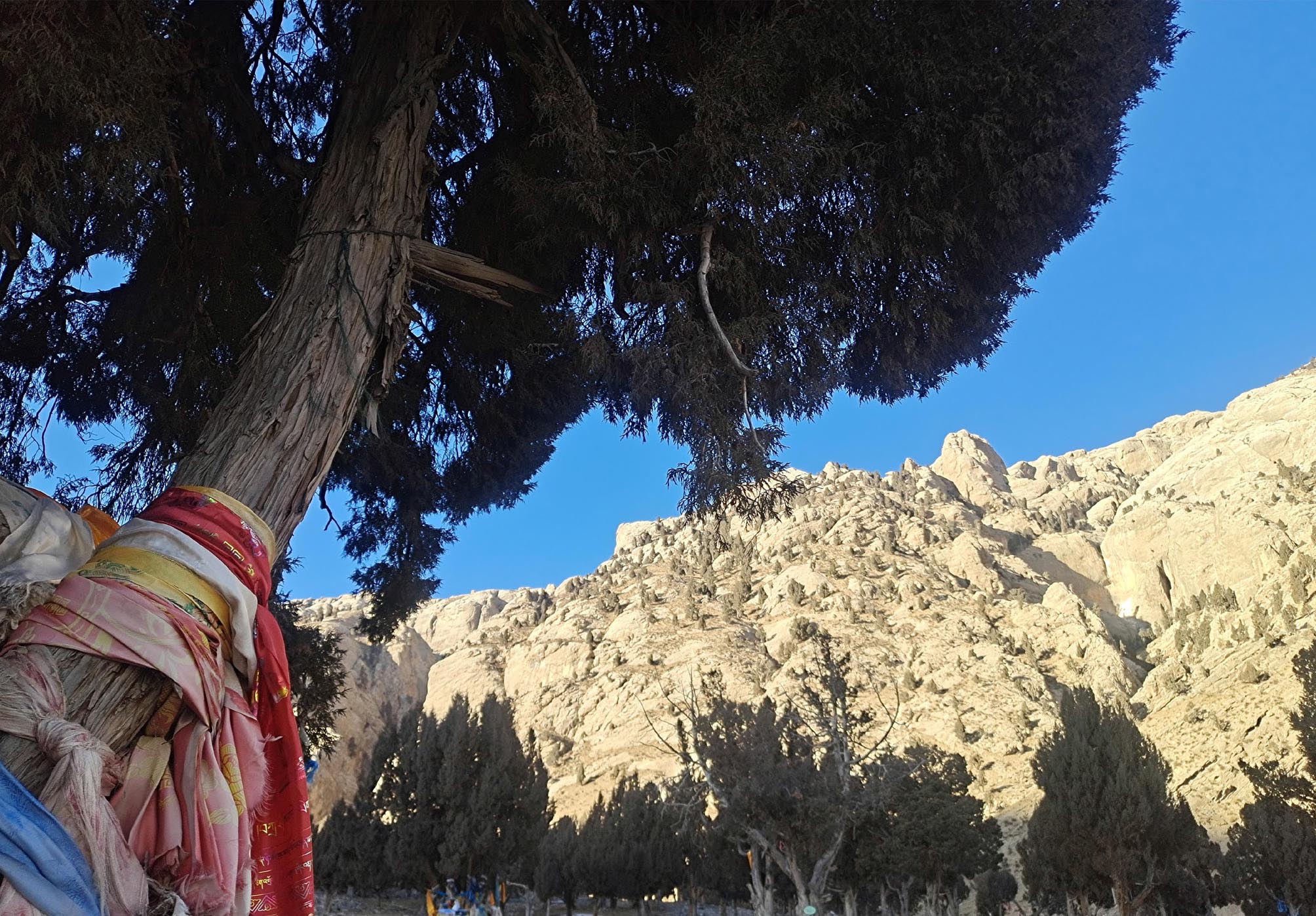古柏园是一块斜坡地,背倚着岩石裸露的大山。大山的阴面雪线之下的缝隙里,顽强地生长着岩柏。那些岩柏长成风的模样,或者被风雕刻成年轮的模样,有的残肢,有的断臂,有的盘虬低首,有的孤傲问天,姿势各异,但都展露出顽强的生命气势。