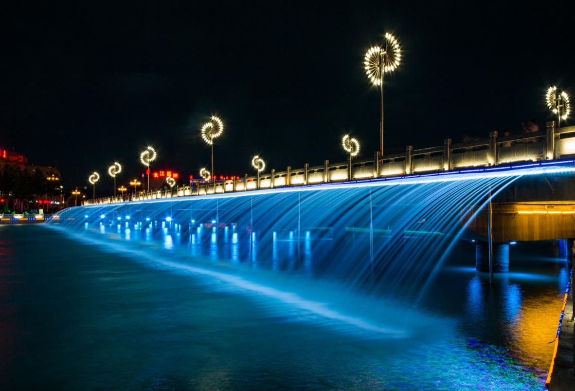 而此时巴音河两岸,人造的七彩灯带在闪烁,那魅惑的光将一条河妆扮得婉约而富有动感。远处巨大的摩天轮,旋转着巨大的光轮,变换着七彩的光谱,成为一条河的焦点。