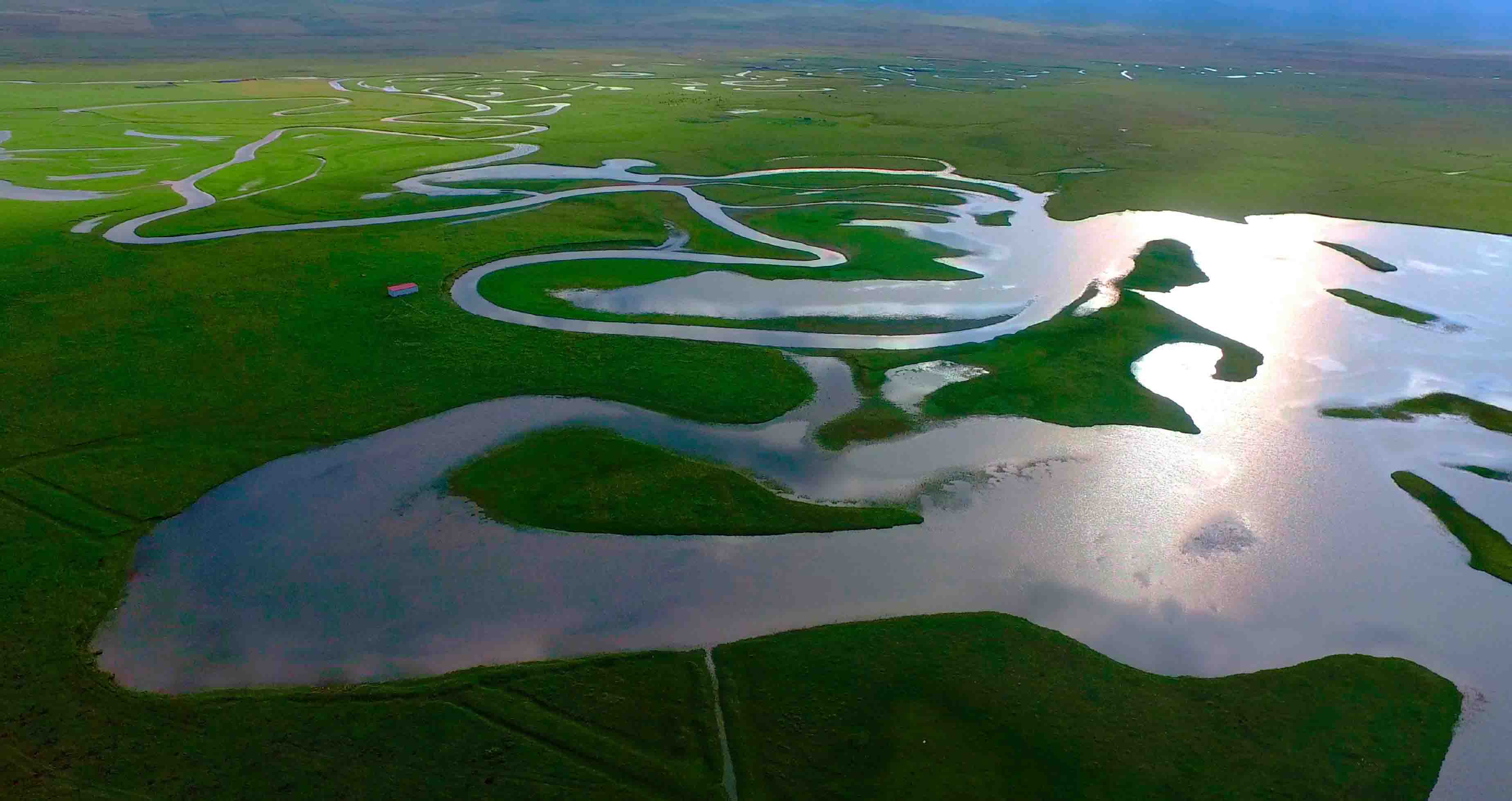 玛曲,藏语的意思为“黄河”。这个看似普通的名字,却是我国唯一一个以中华民族母亲河命名的地方。黄河发源于青海巴颜喀拉山,自西向东从青海门堂乡流入玛曲后,在玛曲东南甘川交界处遇到来自四川北部高山的阻挡,于是掉头,形成了罕见的180°大转弯,重新流回到青海。人们常说九曲黄河,这一曲,就是天下黄河第一弯。黄河在玛曲的流程为433千米,流域面积达9600平方千米,也就是说全县有94%以上的土地都属于黄河流域。黄河流入玛曲时的水流量占黄河总流量的20%,流出玛曲时水流量约增加到60%,在玛曲段的补充水量约占黄河总水流量的40%。因此有黄河发源于青海,成河于玛曲之说。境内星罗棋布的大小溪流、湖泊和沼泽湿地,构成了黄河上游完整的水源体系。贡赛喀木道,位于阿万仓镇以南,藏语意为贡曲、赛尔曲、道吉曲三条河流与黄河的汇流之地,属盆形草原区。贡曲、赛尔曲在阿万仓镇的西北,道吉曲在阿万仓镇的东面。由于河岸极低,排水不畅,这里形成了大面积的沼泽地。远看贡赛喀木道风景区,河流回环,就像一条条玉带飘落在草原上。2010年,在第十六届亚洲旅游业金牌奖及大中华区域文化大奖发布会上,“天下黄河第一弯”被评为“亚洲大中华区十大自然原生态旅游区”。2005年,玛曲的阿万仓——乔科湿地草场与其连成一片的若尔盖湿地、曼扎塘湿地、尕海湿地在《中国国家地理》组织的“选美中国”活动中被评为“中国最美的五大草场湿地”第一名。